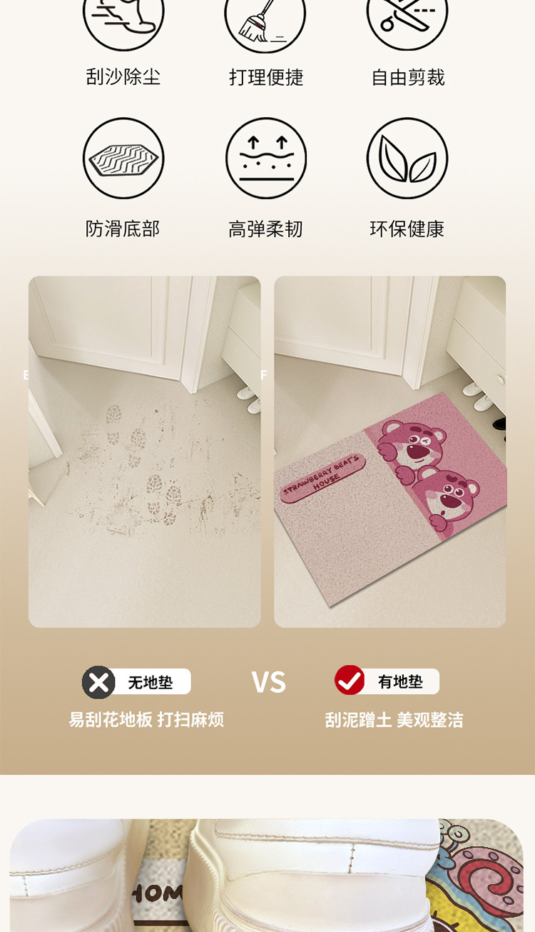 만화 가정용 미끄럼 방지 실크 루프 바닥 매트 복도 절단 가능한 내마모성 먼지 제거 풋 매트 스크래핑 입구 도어 바닥 매트