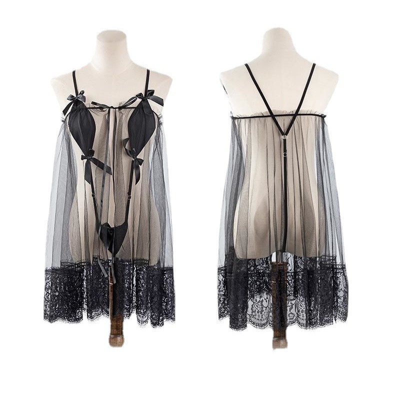 페어리 서스펜더 스커트 블랙 + 블랙 망사 스타킹