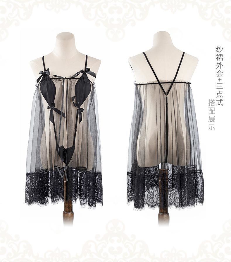 섹시한 란제리 여성 베일 스커트 빈 코트 와일드 로즈 투명 잠옷 할로우 여성 3 점 열정 세트 1031