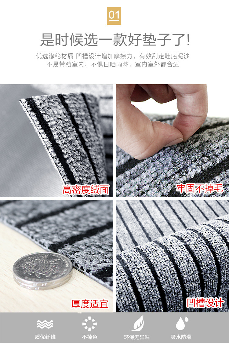 주방 물 흡수성 오일 더러운 저항하는 발 매트 7 줄무늬 바닥 입구 문 문지름 먼지 미끄럼 방지 매트 홈 흡수성 카펫