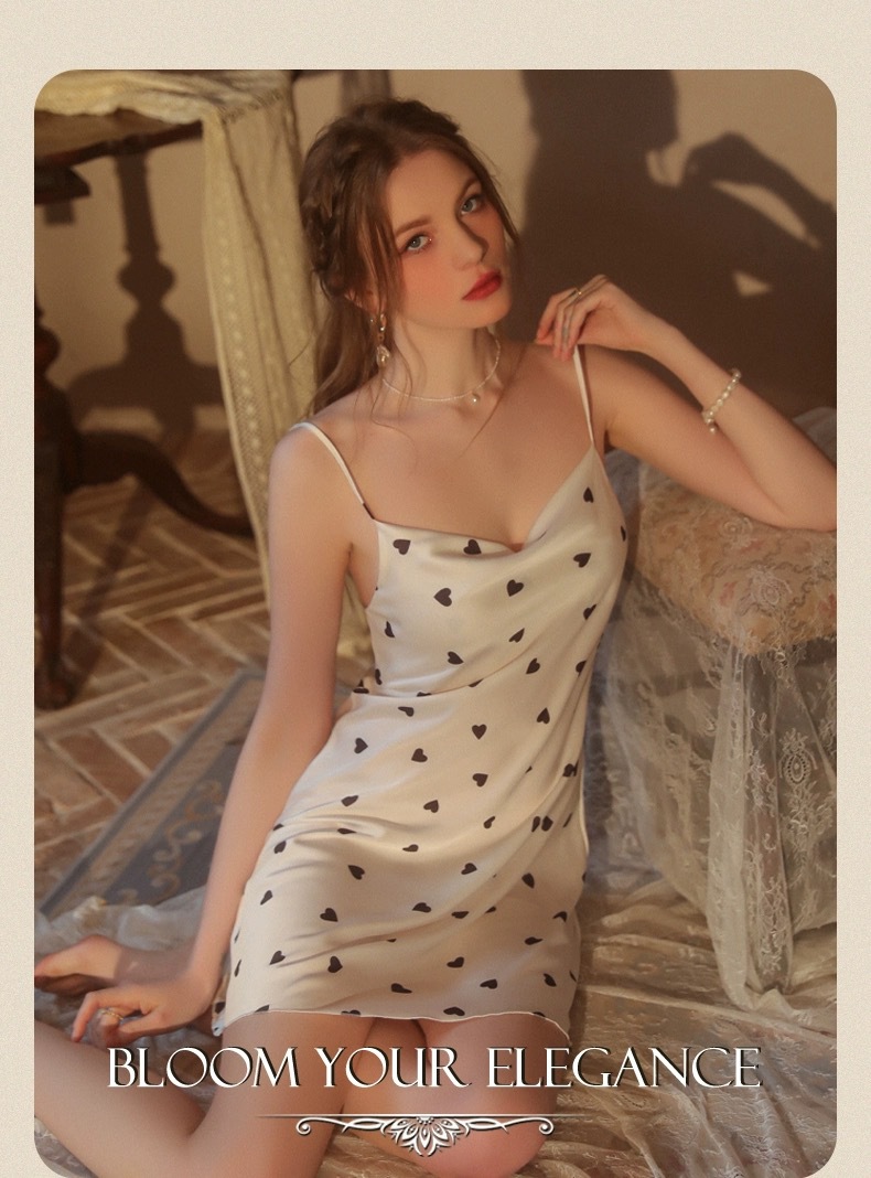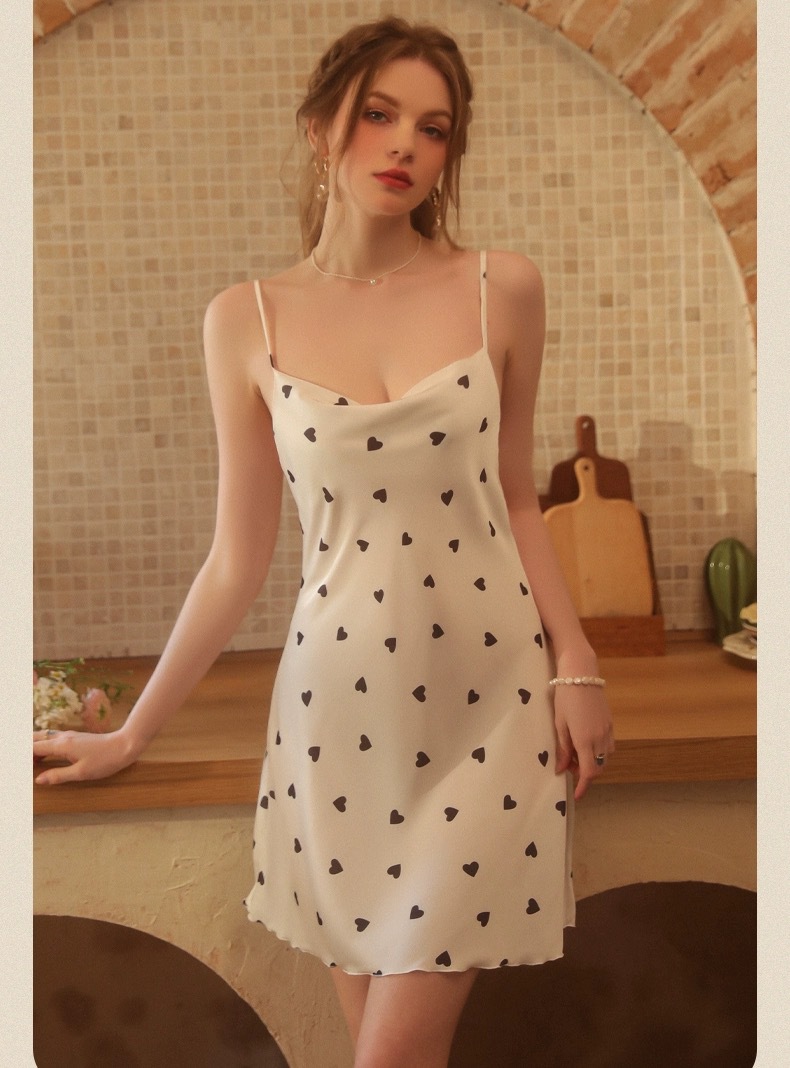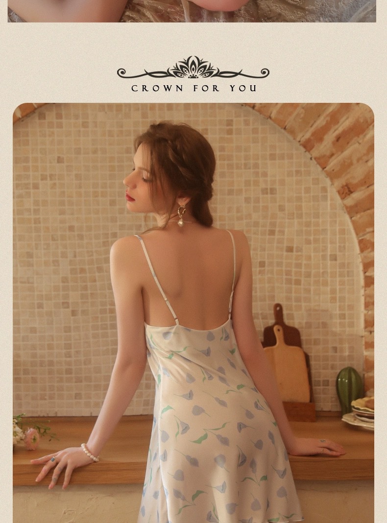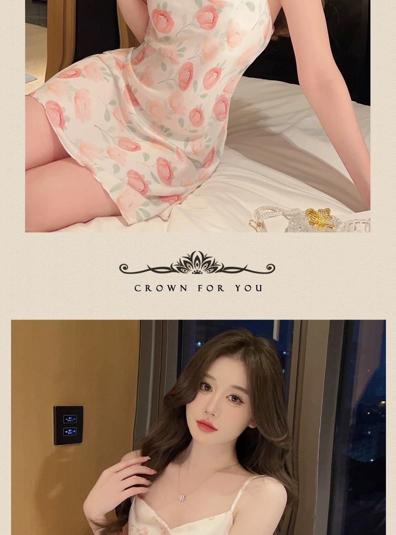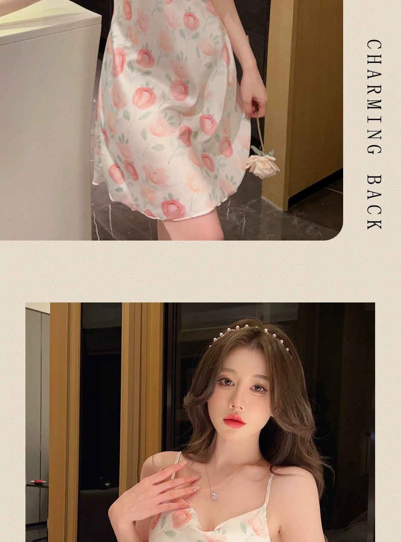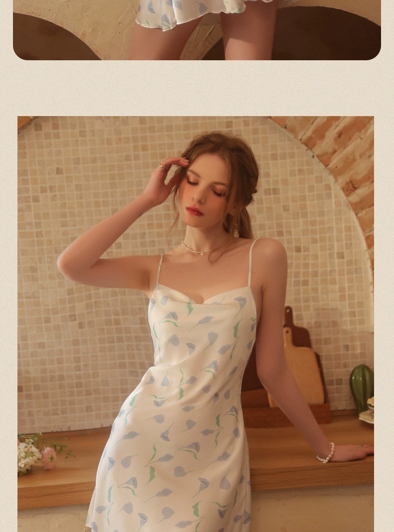 여성을위한 섹시한 잠옷 여름 2025 새로운 얼음 실크 하이 엔드 스윙 칼라 꽃 서스펜더 잠옷 홈웨어