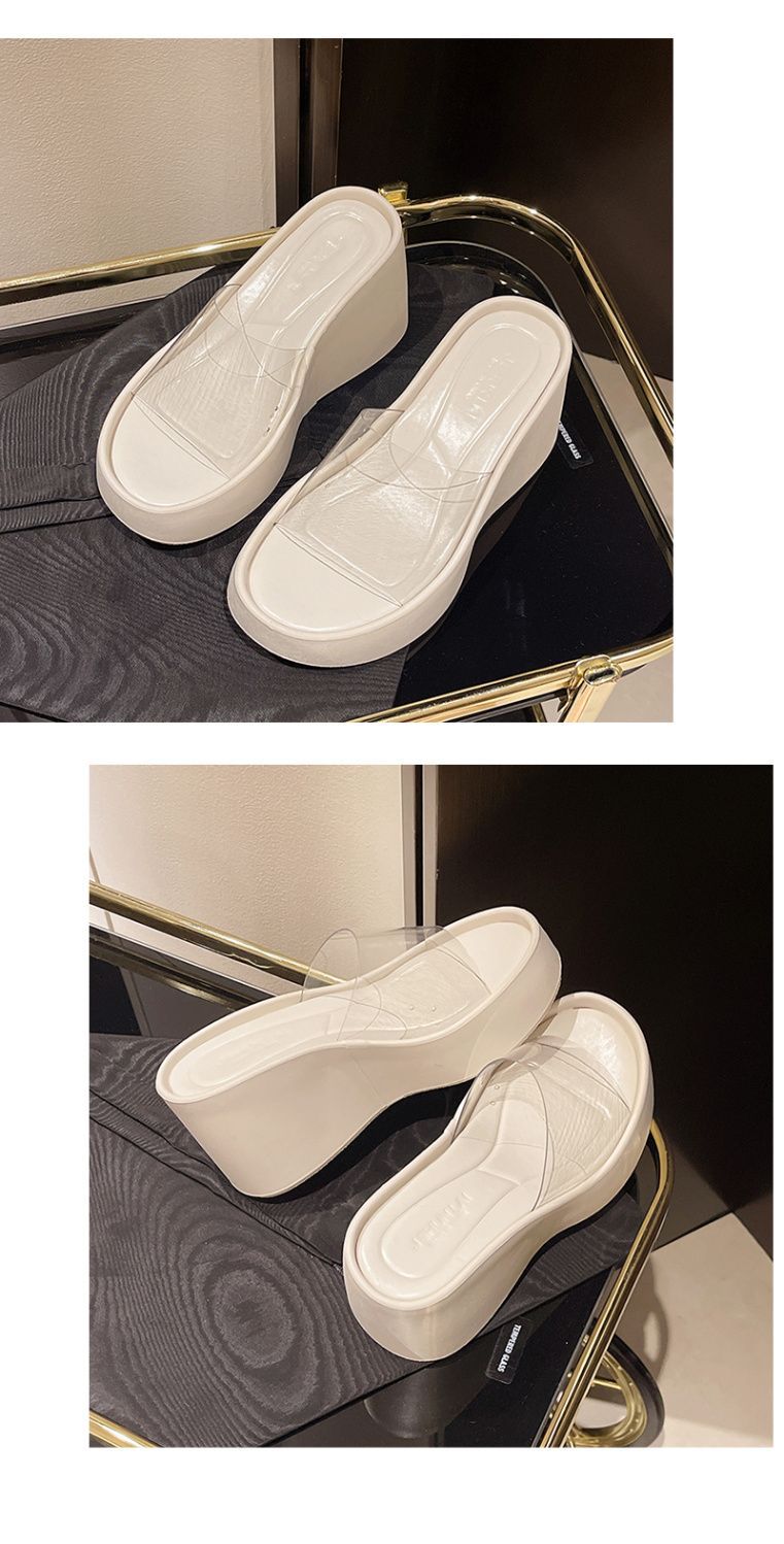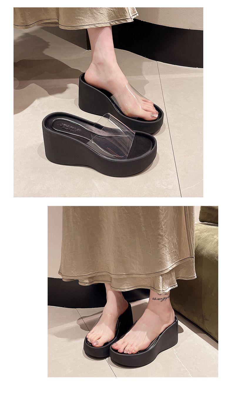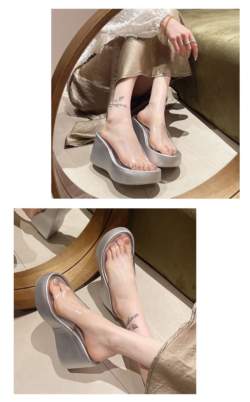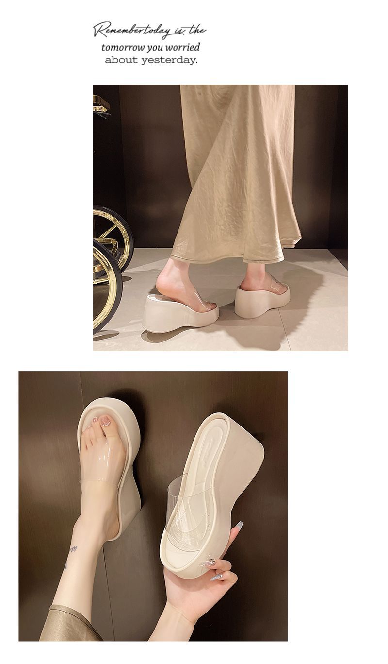 하이힐과 두꺼운 바닥을 가진 투명한 슬리퍼 여성용 외부 착용 여름 2025 새로운 스타일의 높은 쐐기 비치 샌들