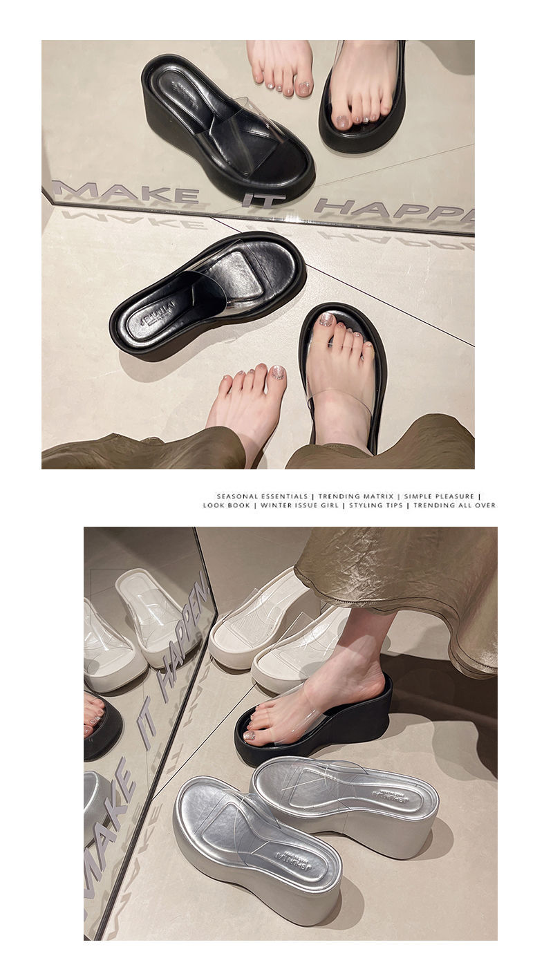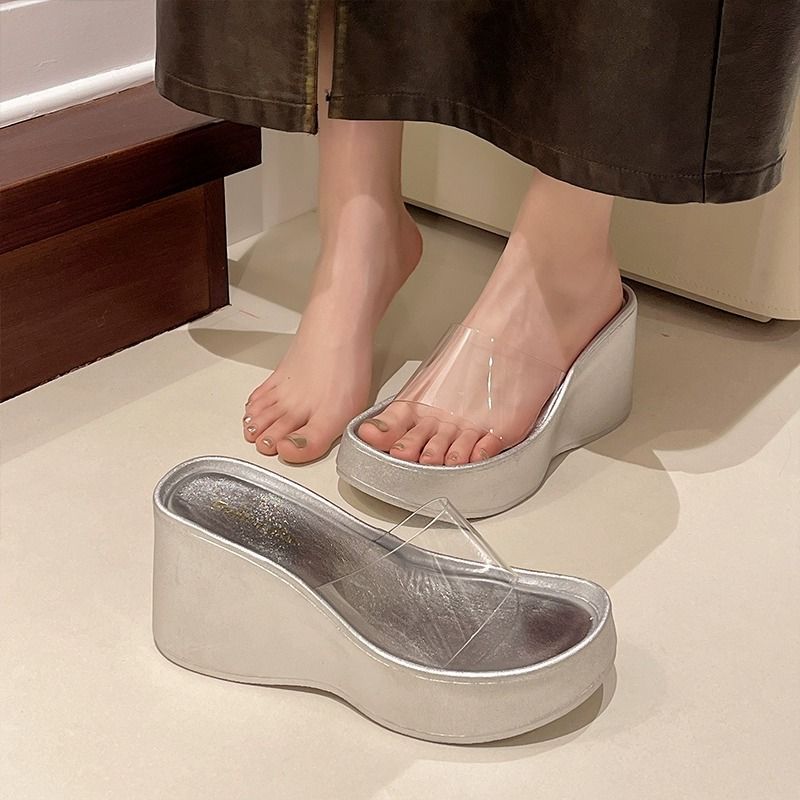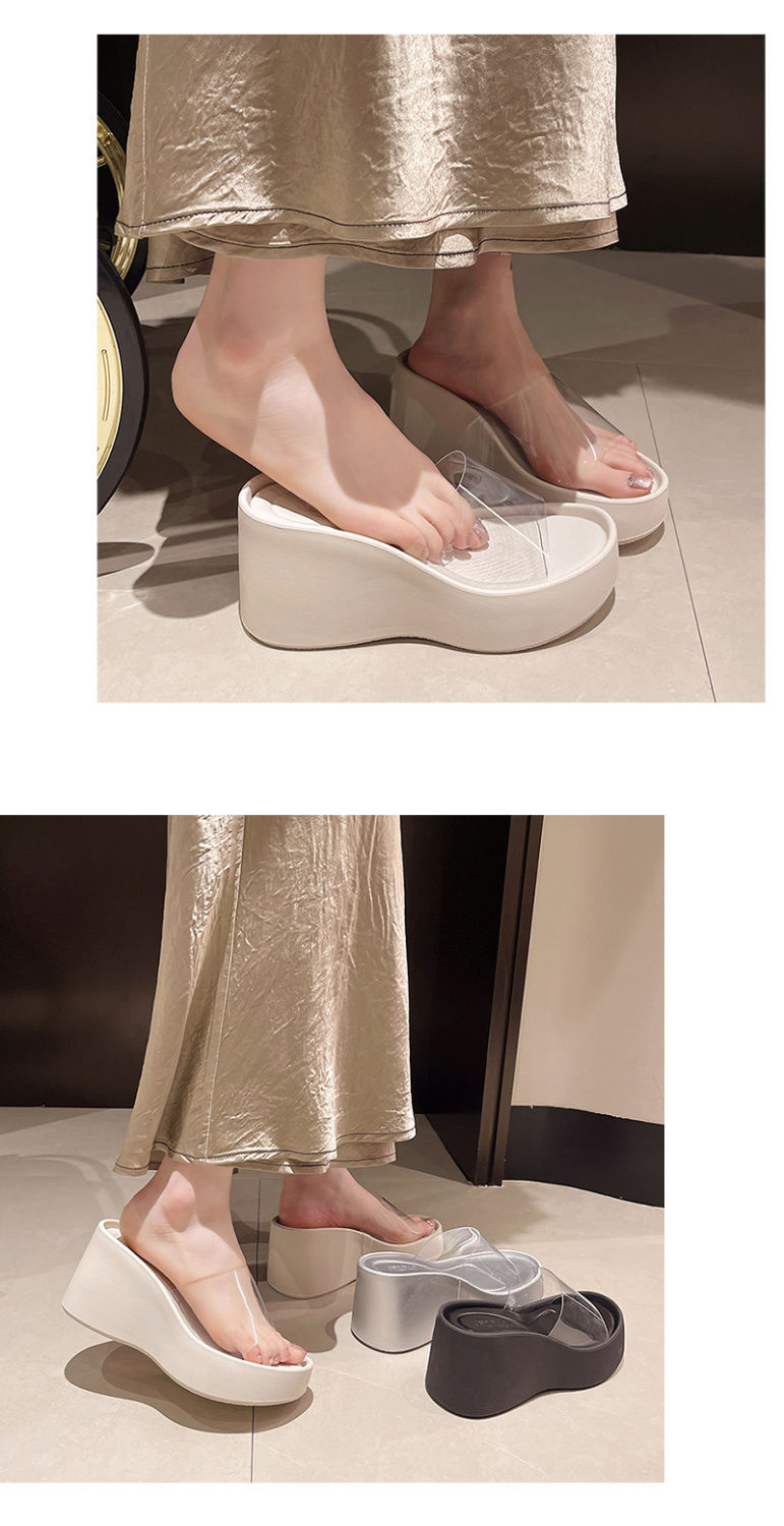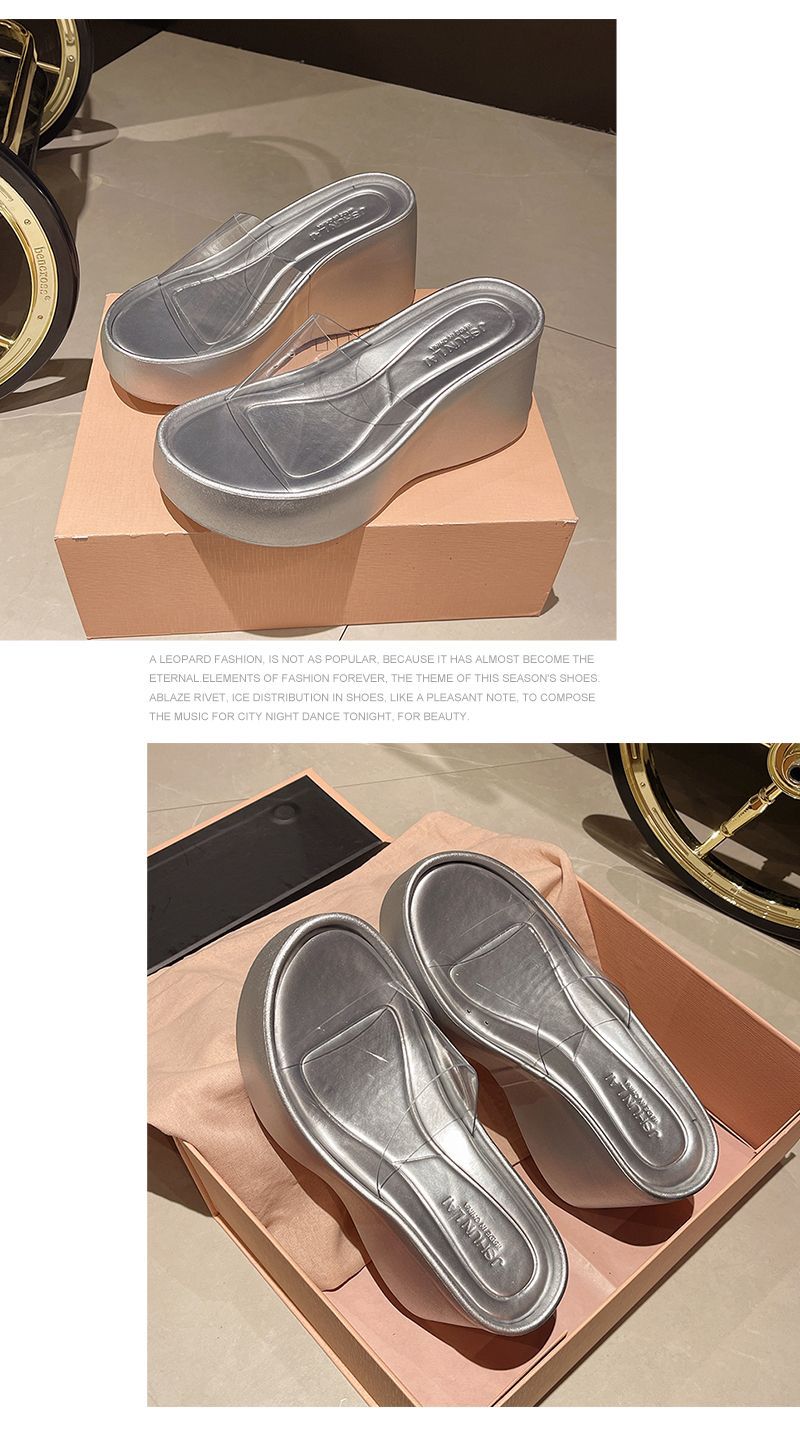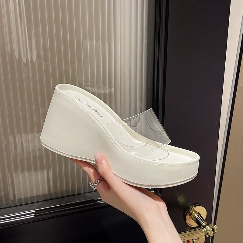 하이힐과 두꺼운 바닥을 가진 투명한 슬리퍼 여성용 외부 착용 여름 2025 새로운 스타일의 높은 쐐기 비치 샌들