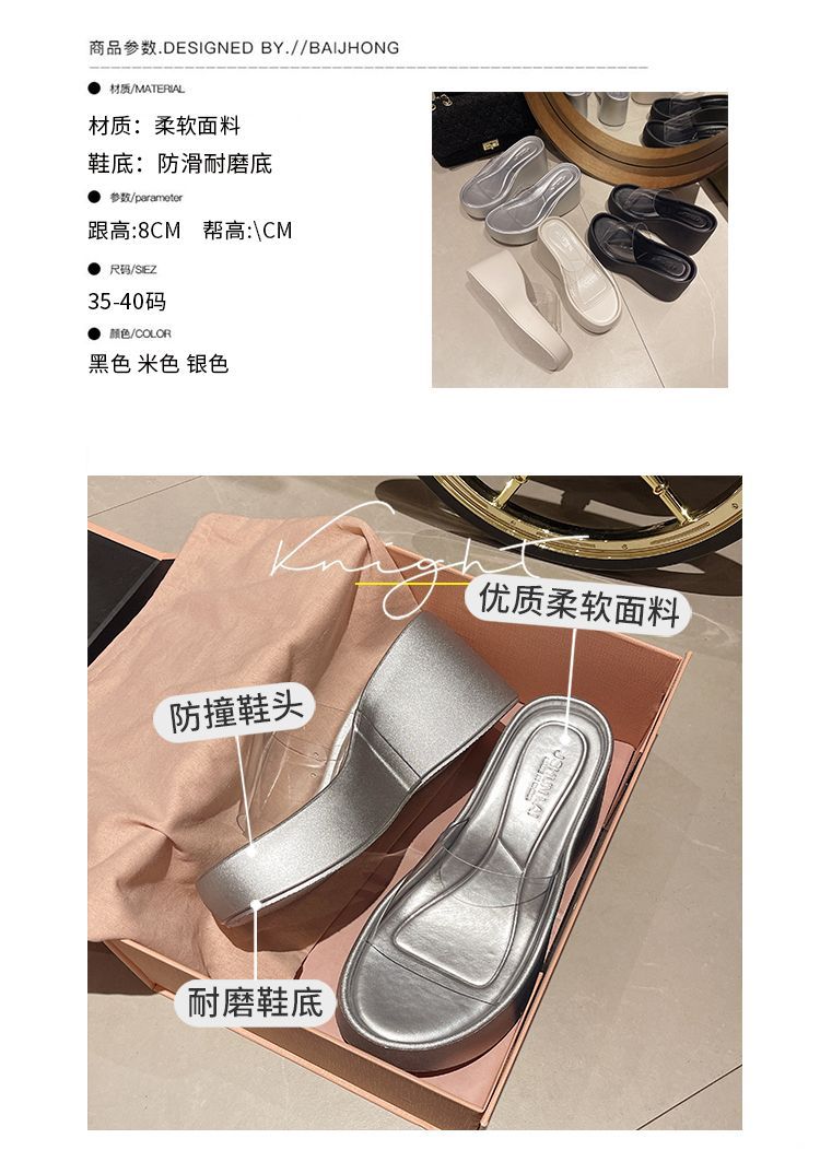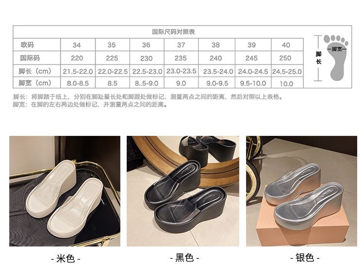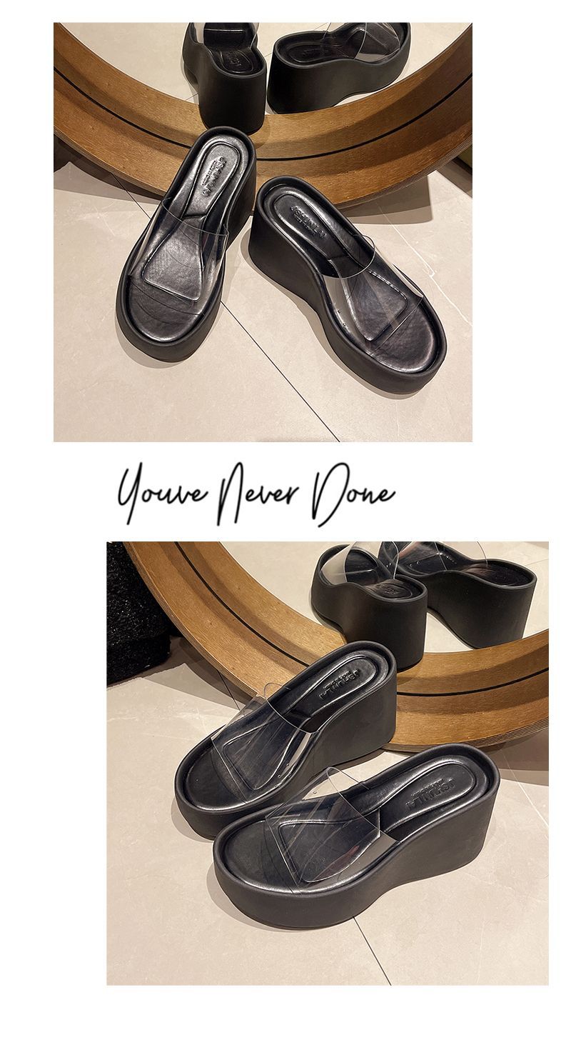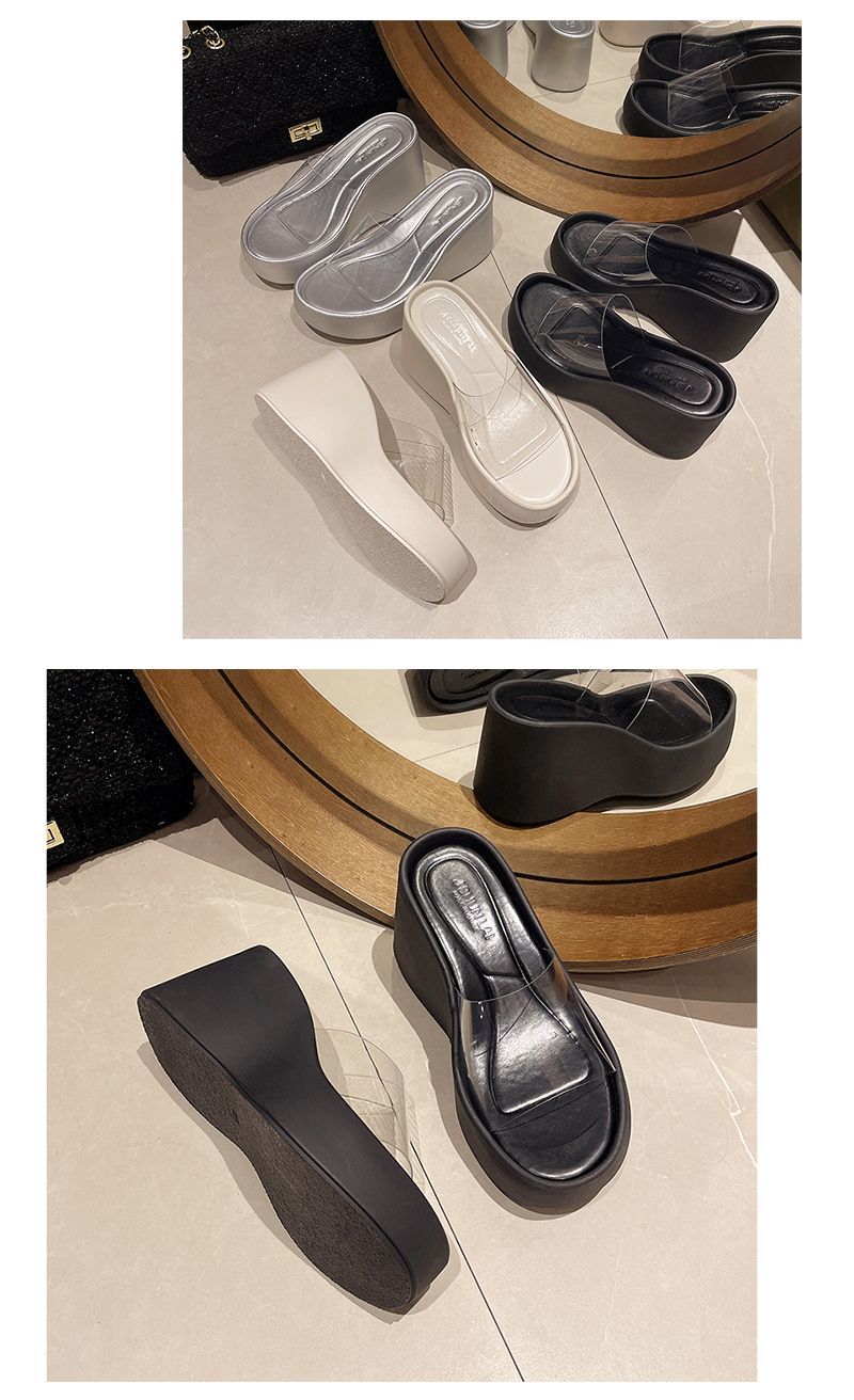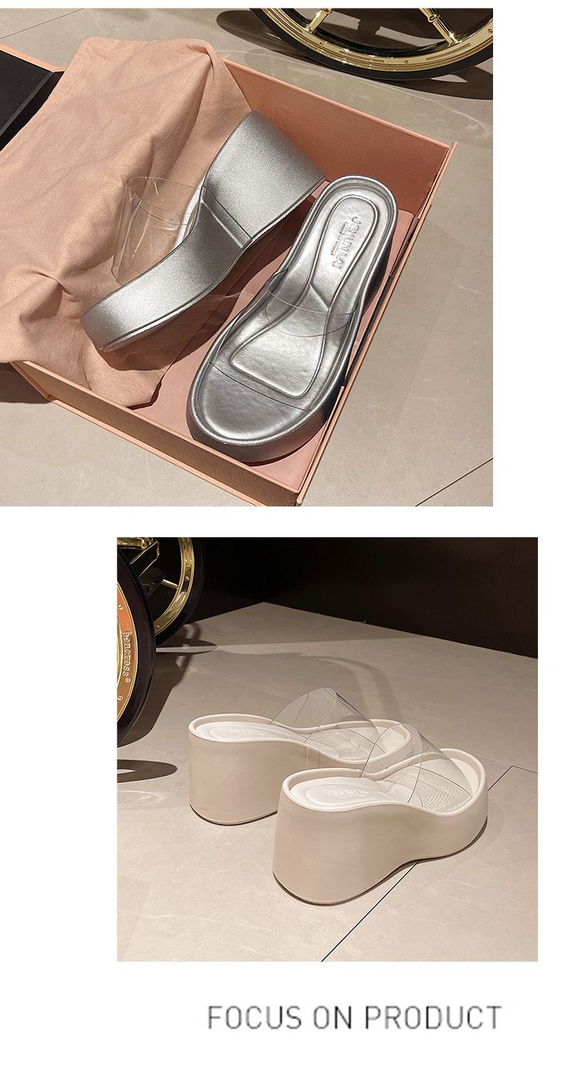 하이힐과 두꺼운 바닥을 가진 투명한 슬리퍼 여성용 외부 착용 여름 2025 새로운 스타일의 높은 쐐기 비치 샌들