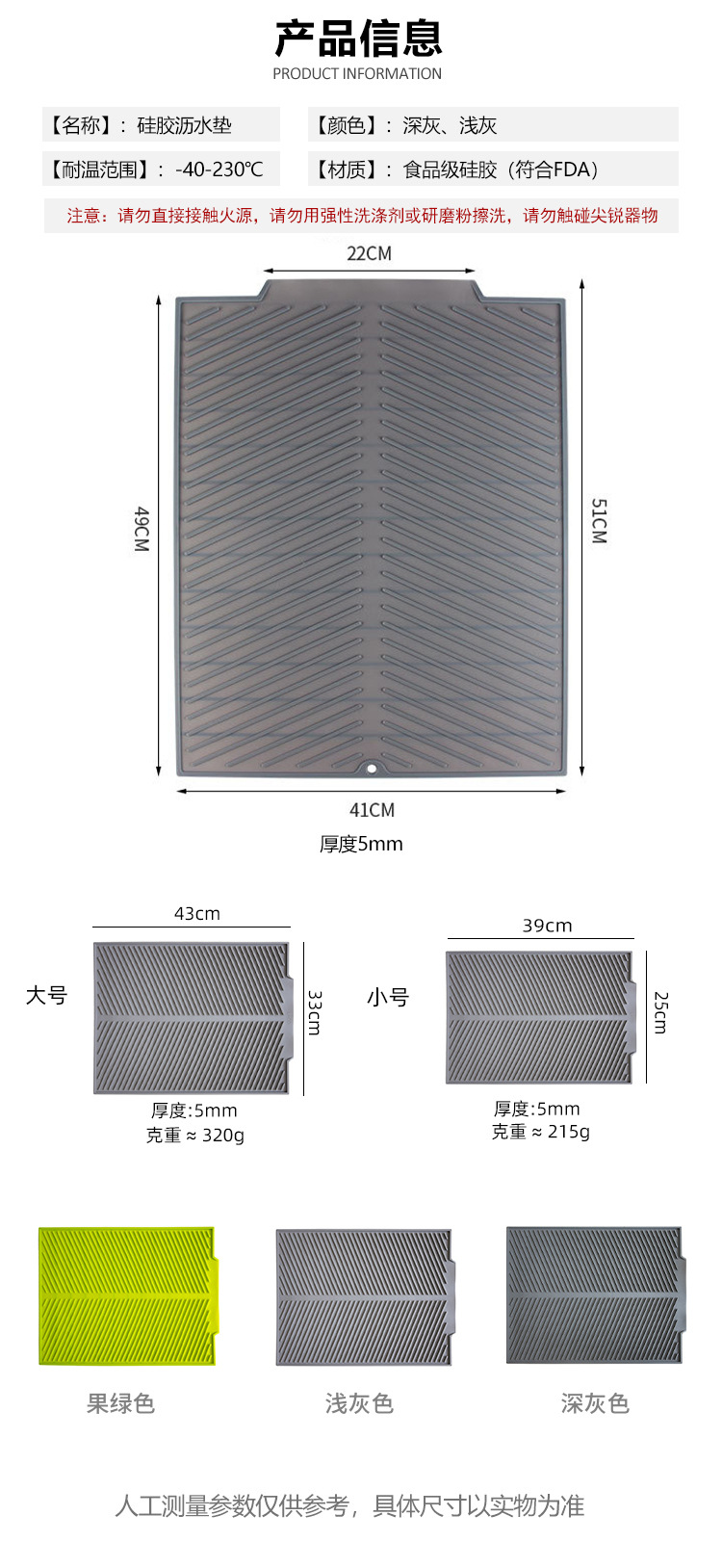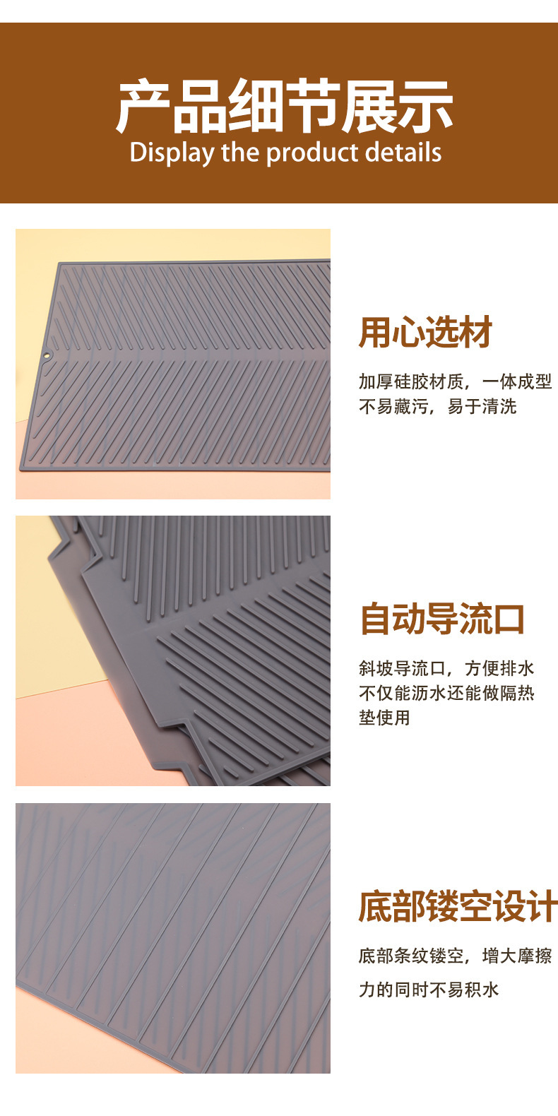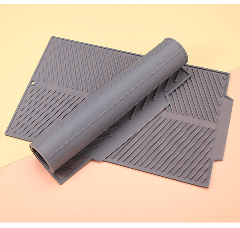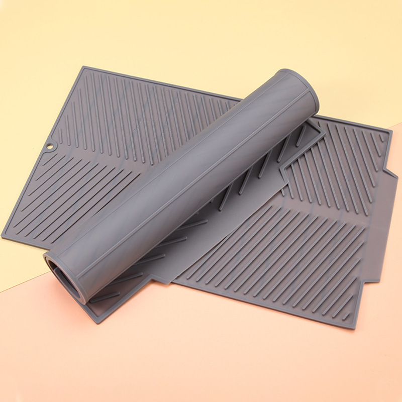 바 카운터 매트 대형, 중형, 소형 실리콘 배수 매트, 접시, 컵 건조 매트, 사선 무늬 단열 매트, 열 차단 및 화상 방지 식기