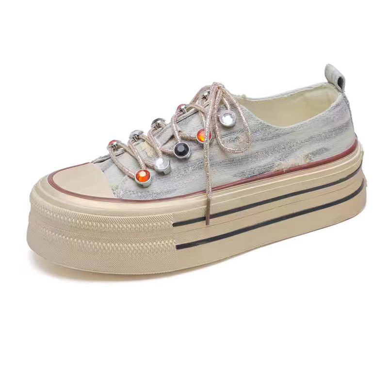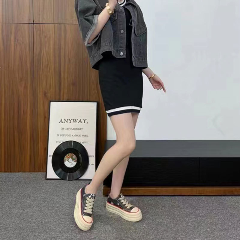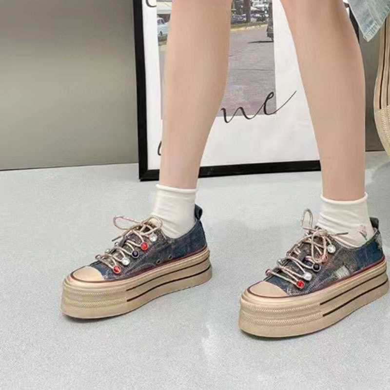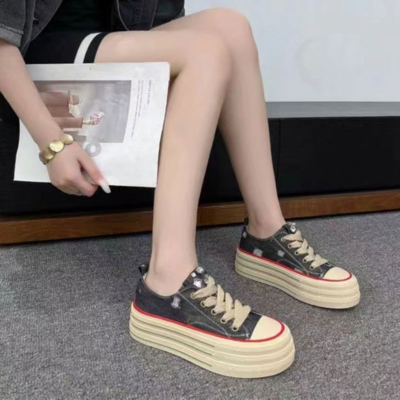 캔버스 신발 여성 2024 새로운 스타일 올드 여름 슈퍼 파이어 플랫폼 하단 캠퍼스 학생들을위한 작은 흰색 신발 증가 스포츠 운동화