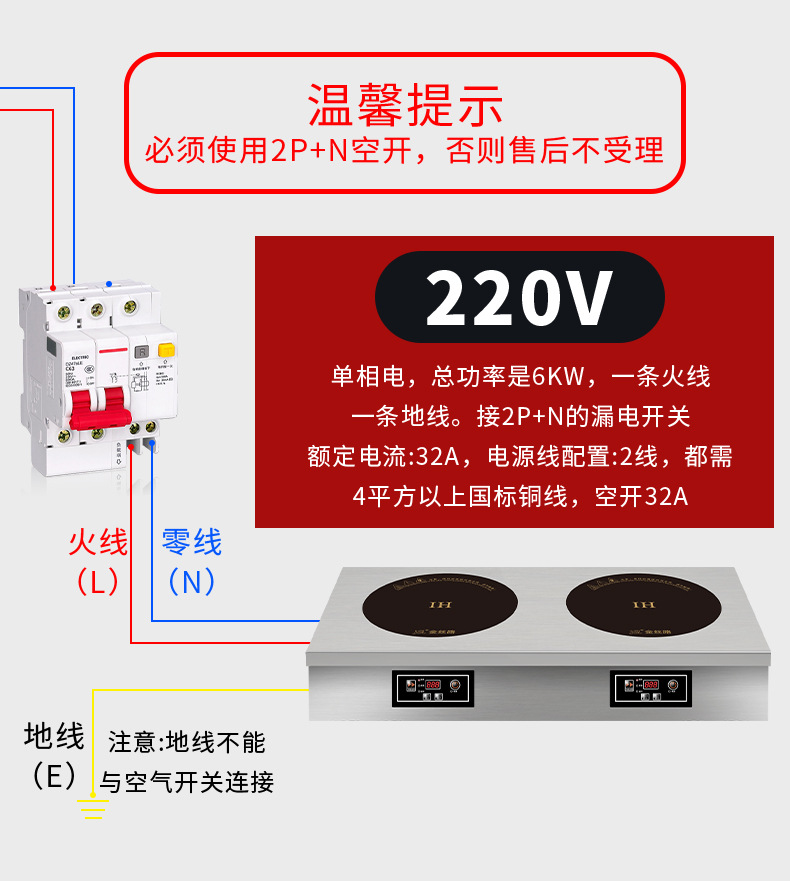 인덕션 쿠커-데스크탑 단일 행 2헤드 3000W