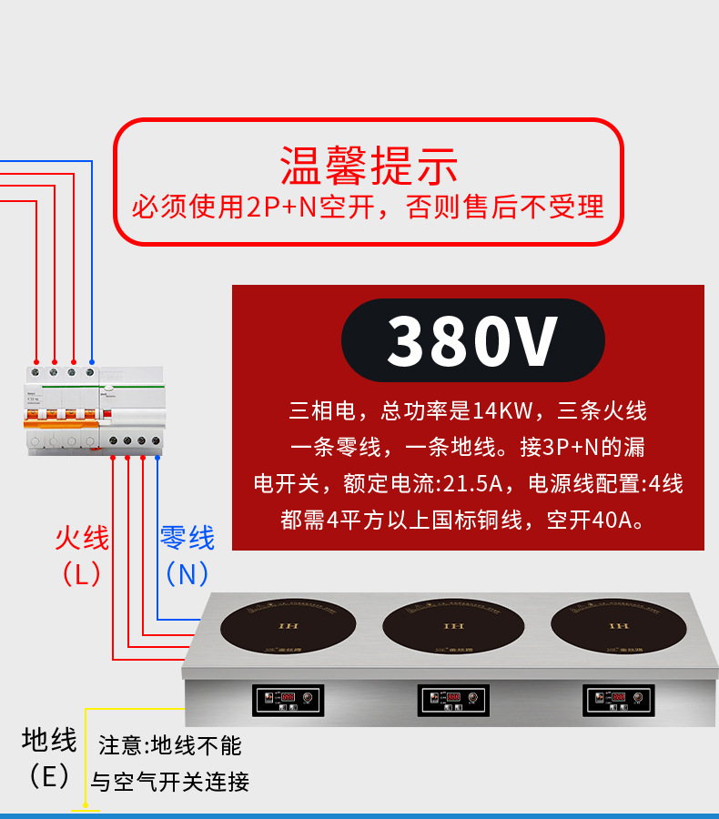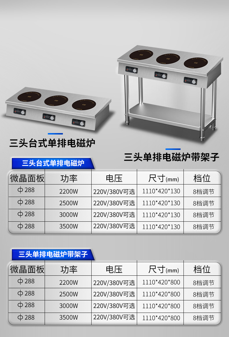 인덕션 쿠커-데스크탑 단일 행 3헤드 3500W