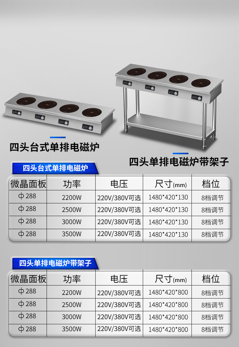 인덕션 쿠커 - 수직 단일 행 4 헤드 3000W
