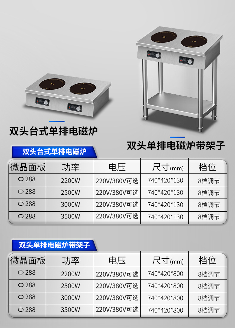 인덕션 쿠커 - 수직 단일 행 2 헤드 3000W
