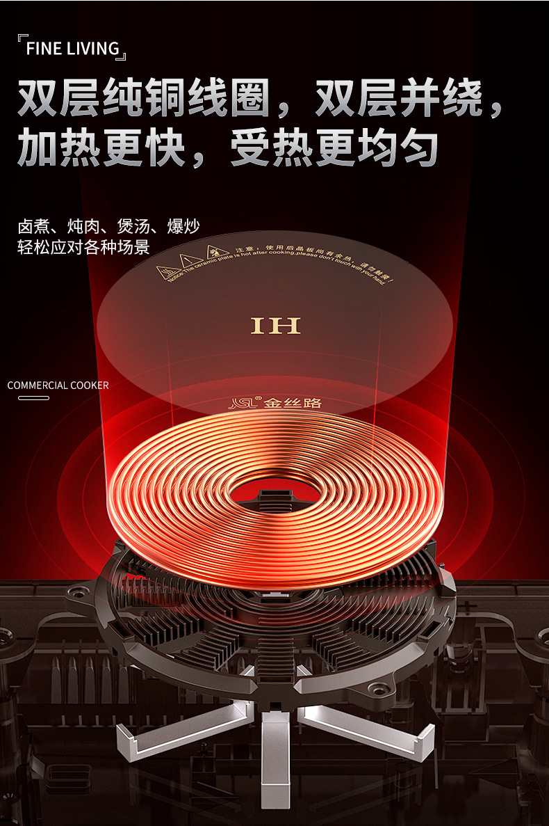 인덕션 쿠커-데스크탑 단일 행 3헤드 2000W