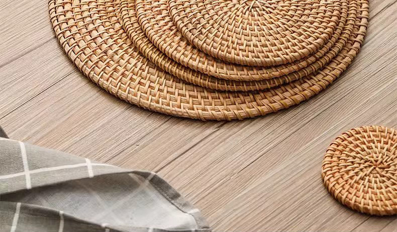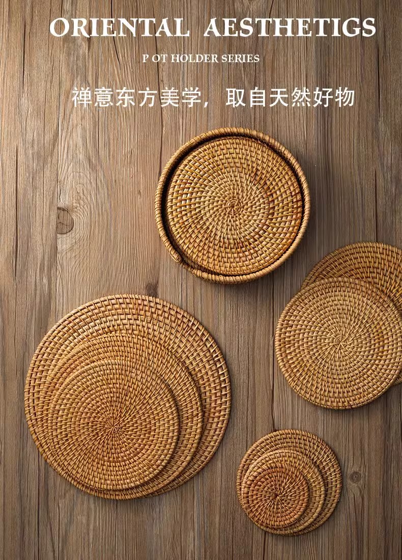 등나무 열 절연 매트 가정용 안티 스케일 고온 테이블 매트 플레이트 매트 코스터 주전자 홀더 크리에이티브 라운드 볼 매트
