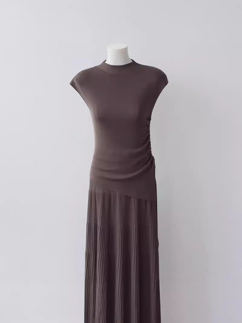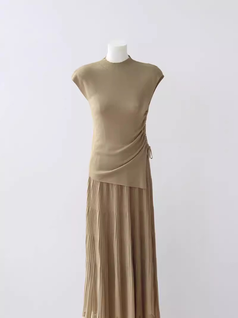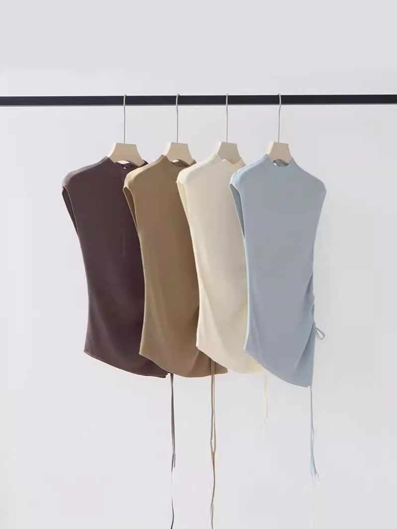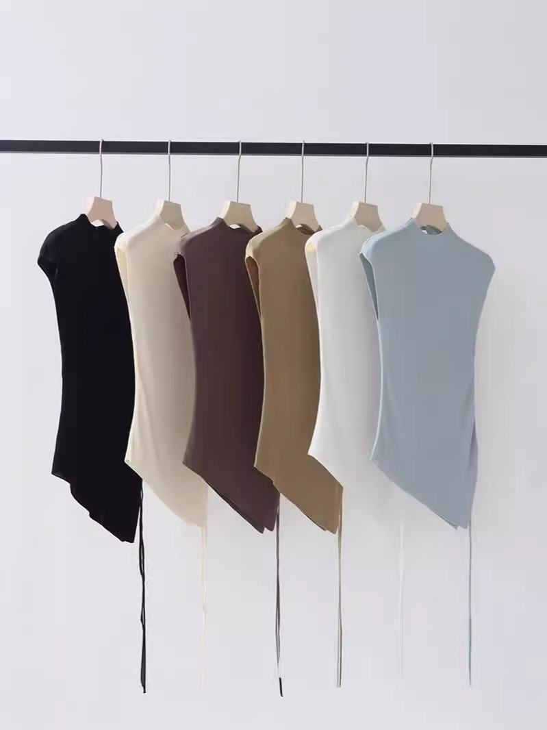 Lyocell Tencel 하프 하이 넥 니트 반팔 티셔츠 여성용 여름 새로운 슬림 핏 슬리밍 내베이스 셔츠 탑