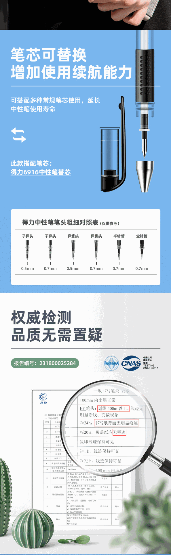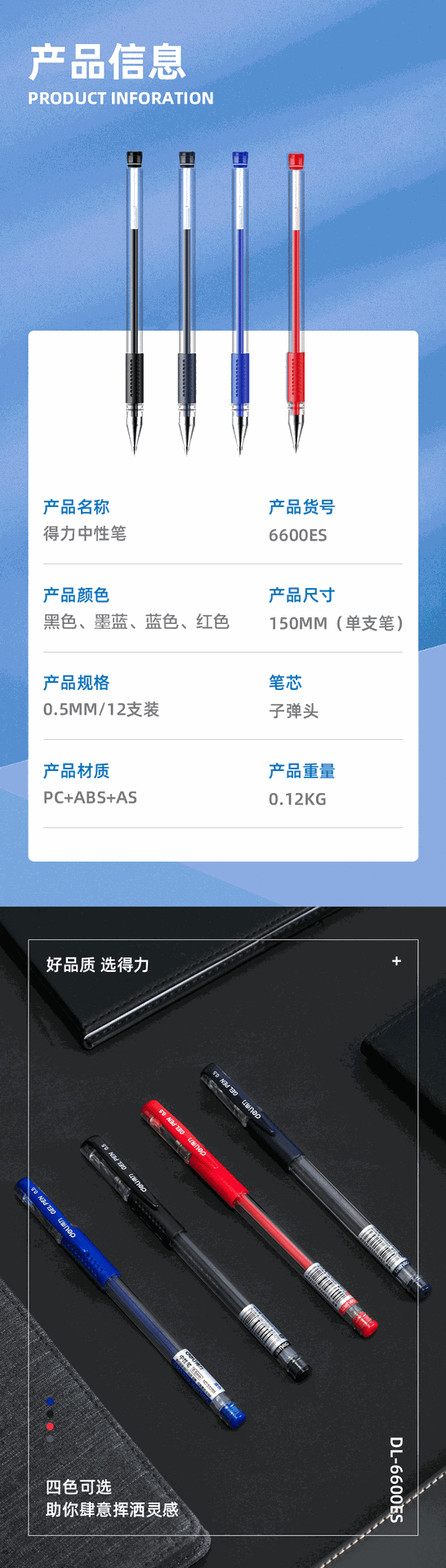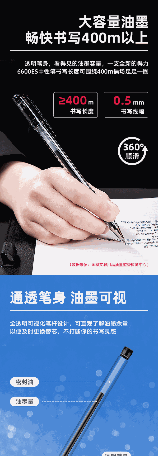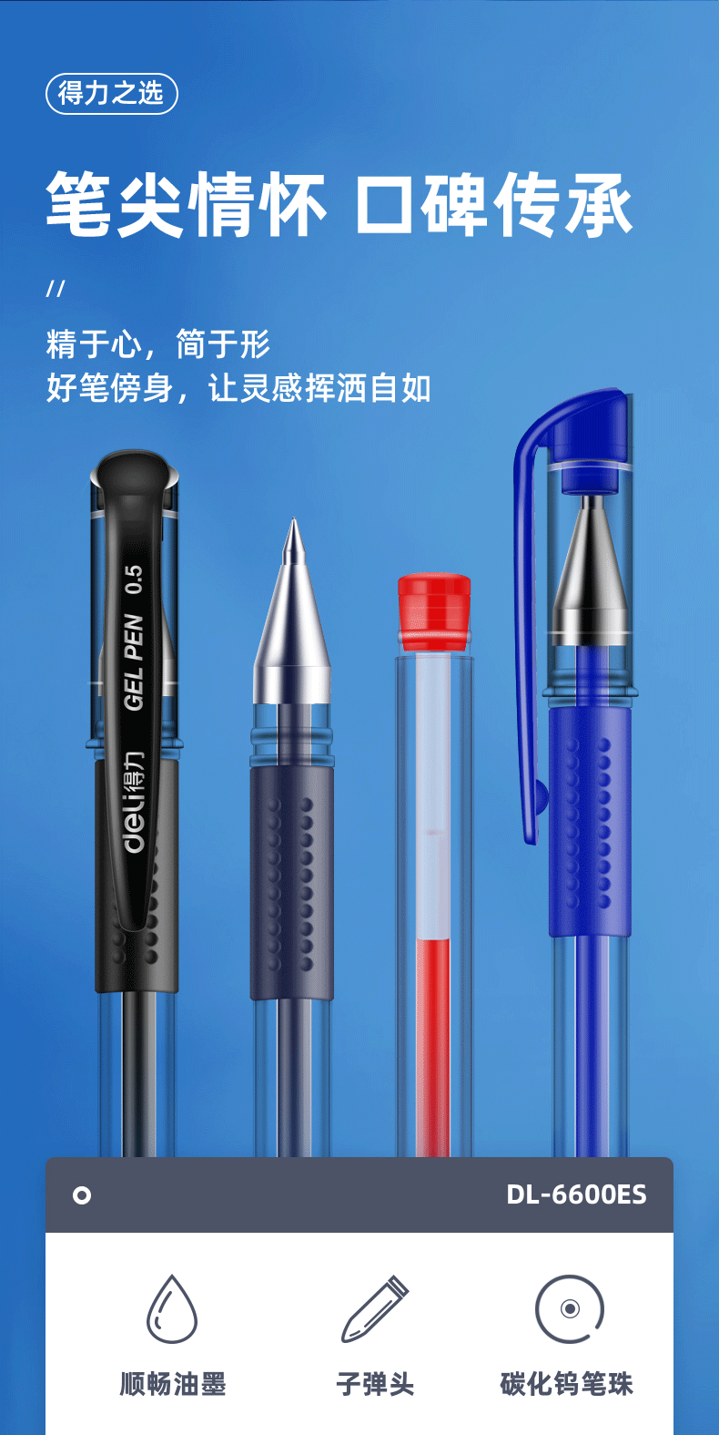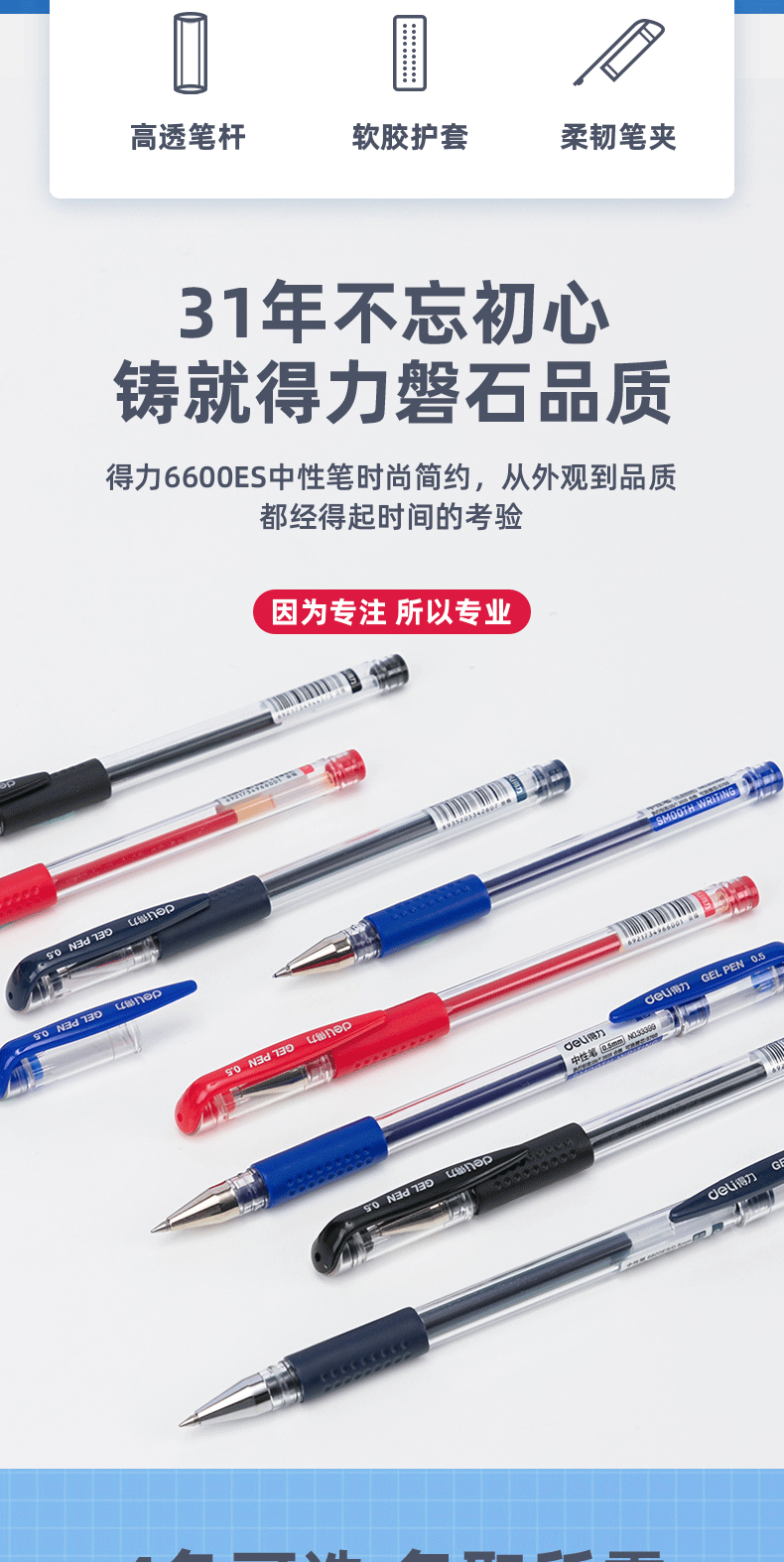 델리 6600ES 중립 펜 투명 막대 0.5mm 사인 펜 블랙 레드 블루 사무실 학습 문구 배치