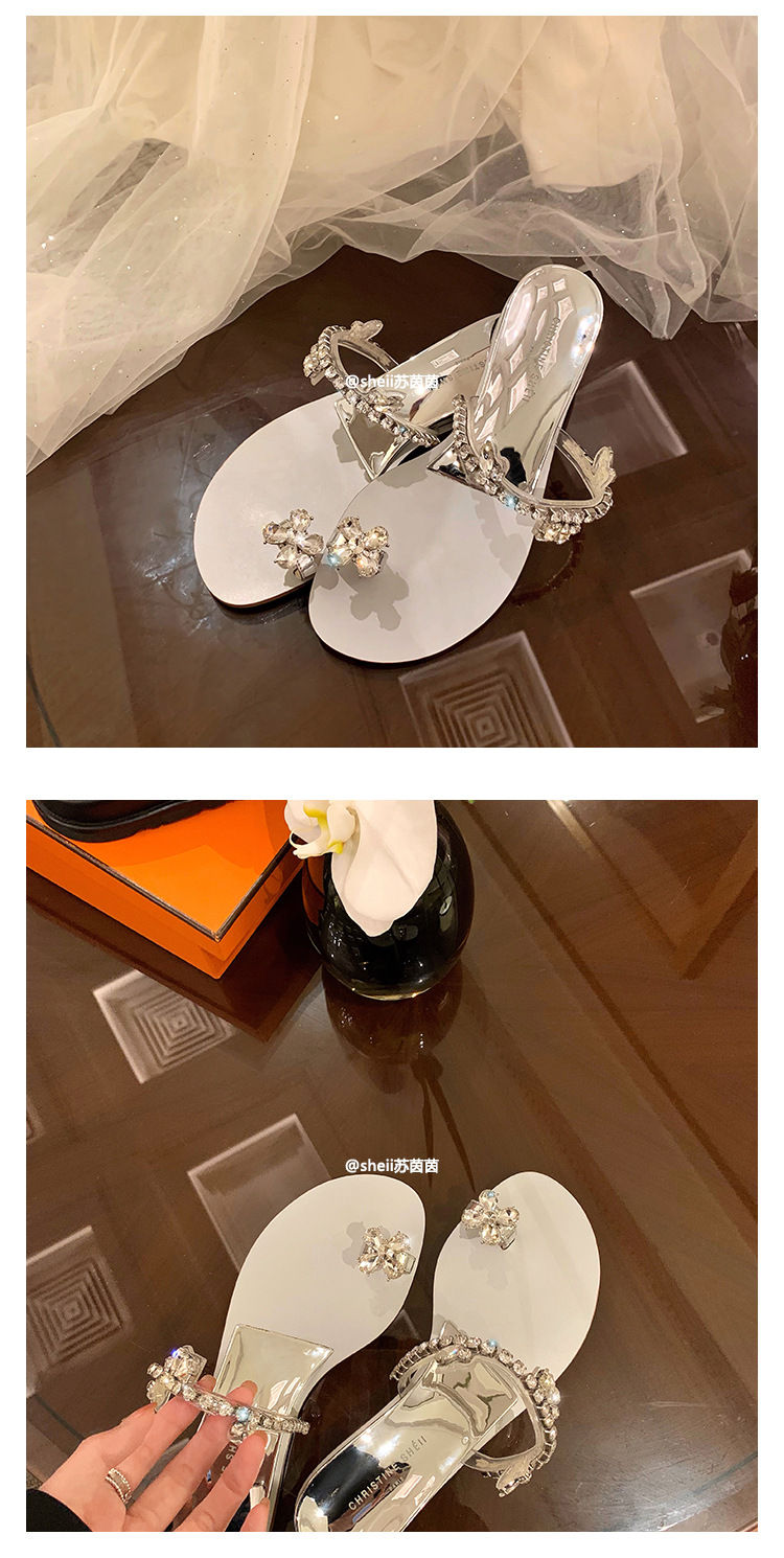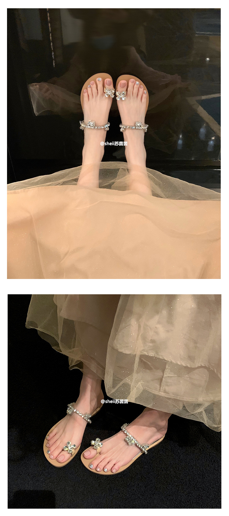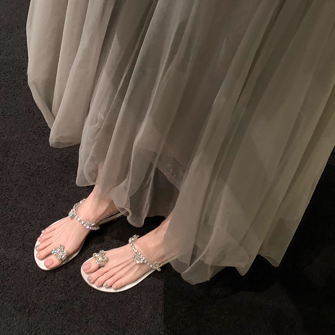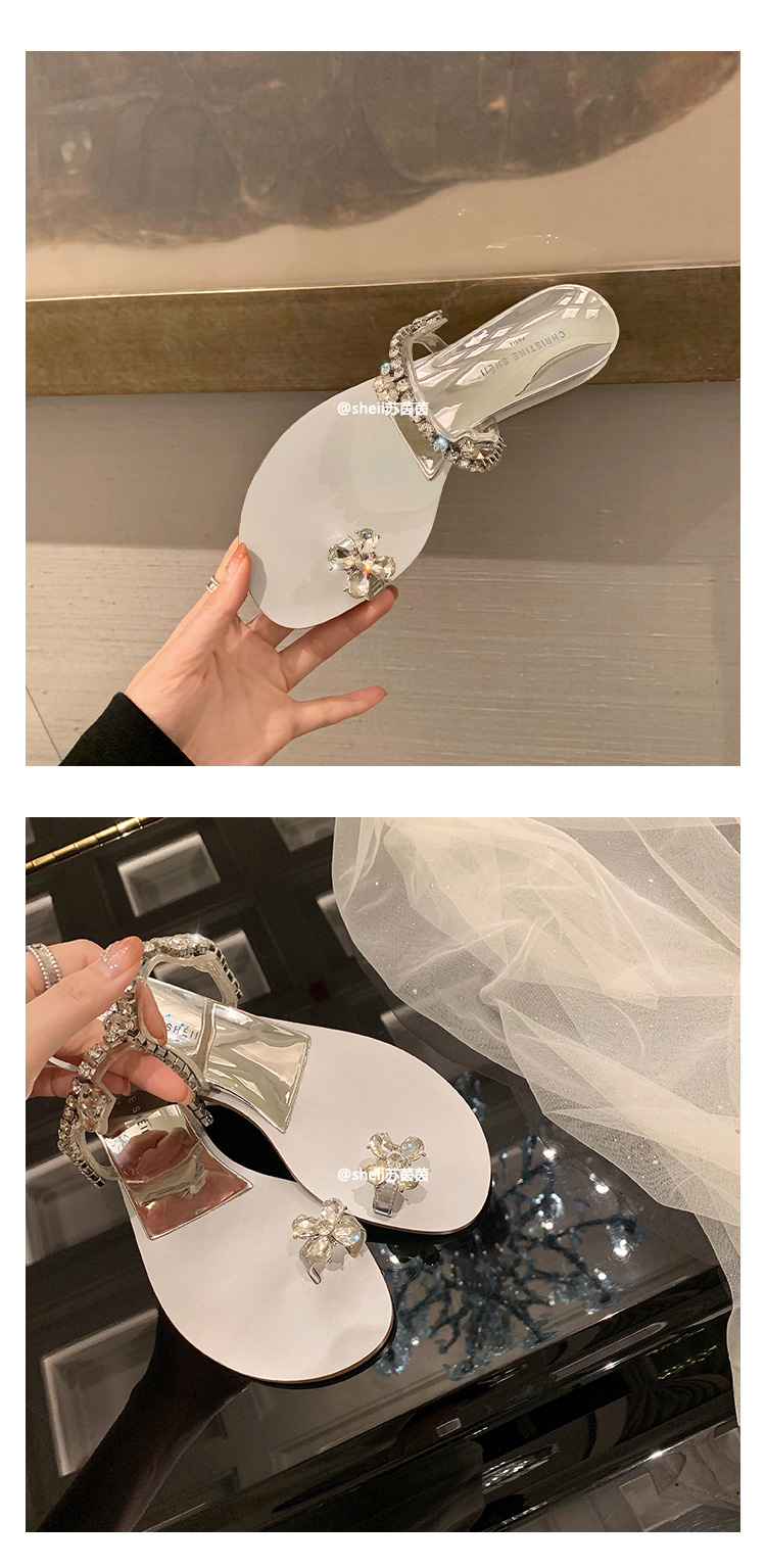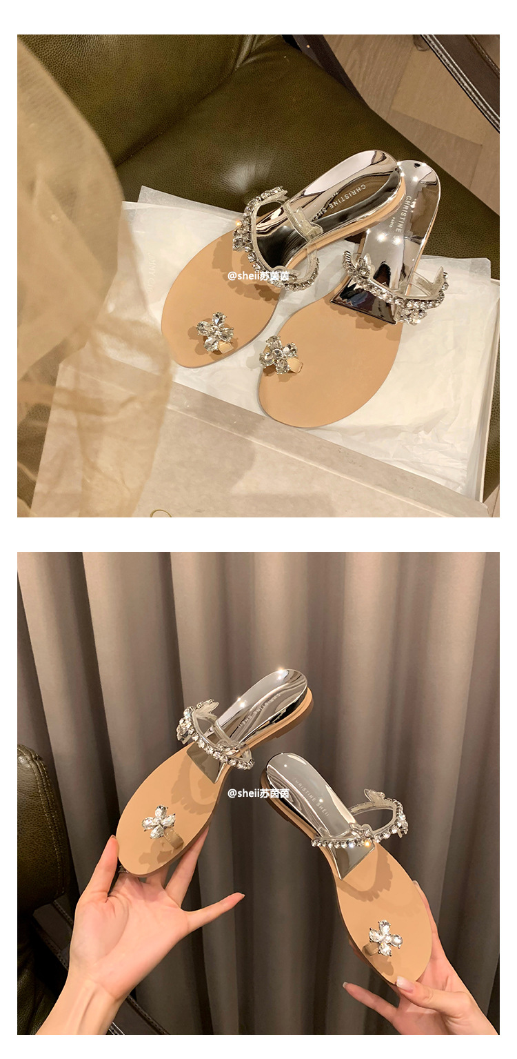 [Su Yinyin 동일] 여름-꽃 다이아몬드 버클 웨지 힐 세트 발가락 플랫 슬리퍼 여름 여성용 샌들