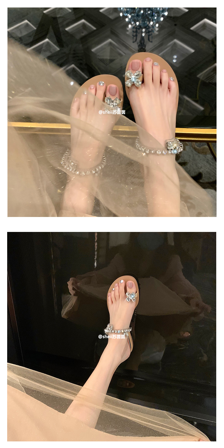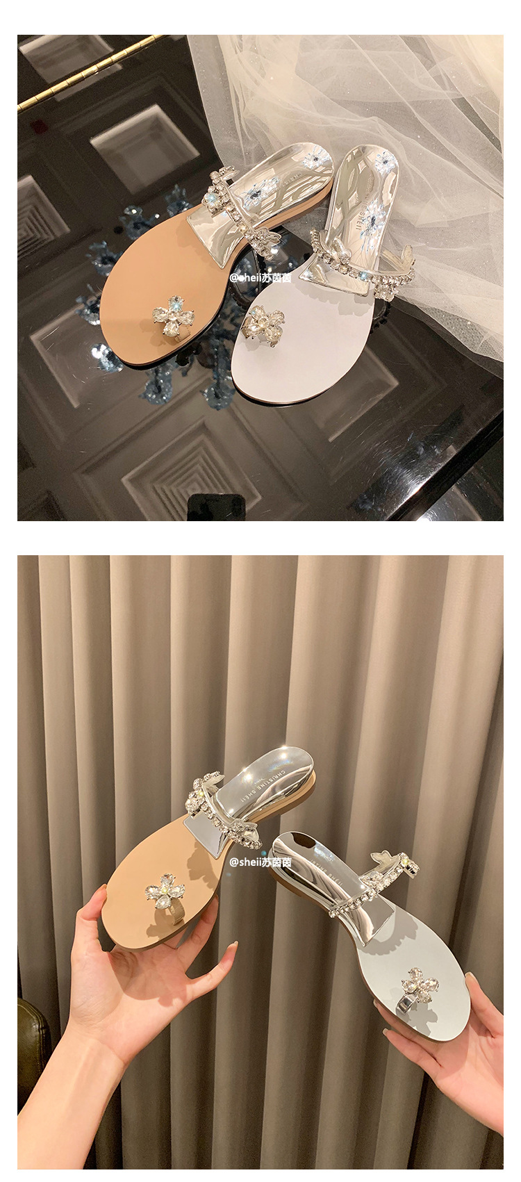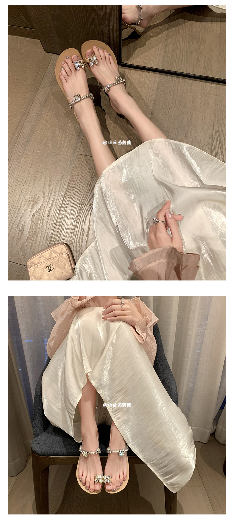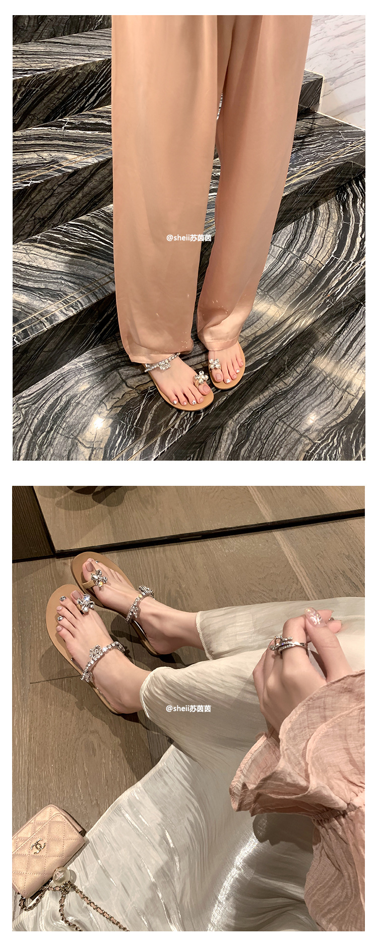 [Su Yinyin 동일] 여름-꽃 다이아몬드 버클 웨지 힐 세트 발가락 플랫 슬리퍼 여름 여성용 샌들