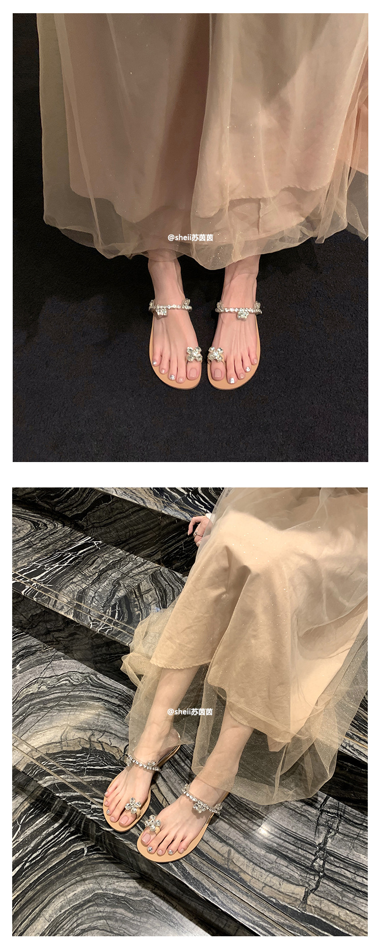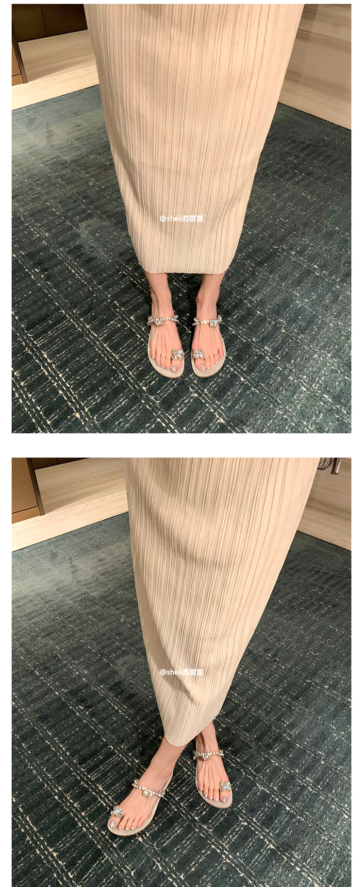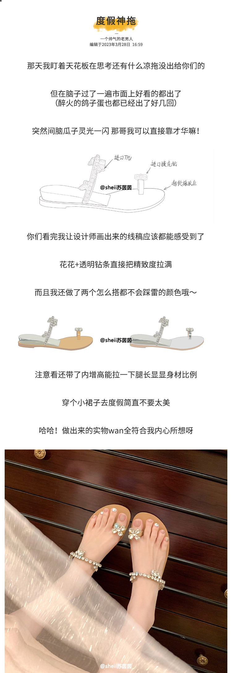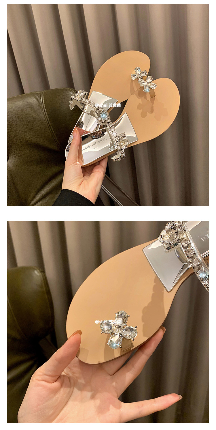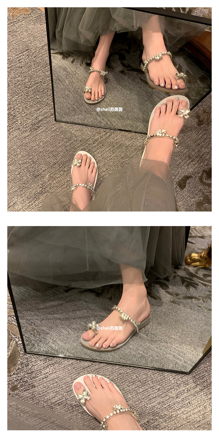 [Su Yinyin 동일] 여름-꽃 다이아몬드 버클 웨지 힐 세트 발가락 플랫 슬리퍼 여름 여성용 샌들