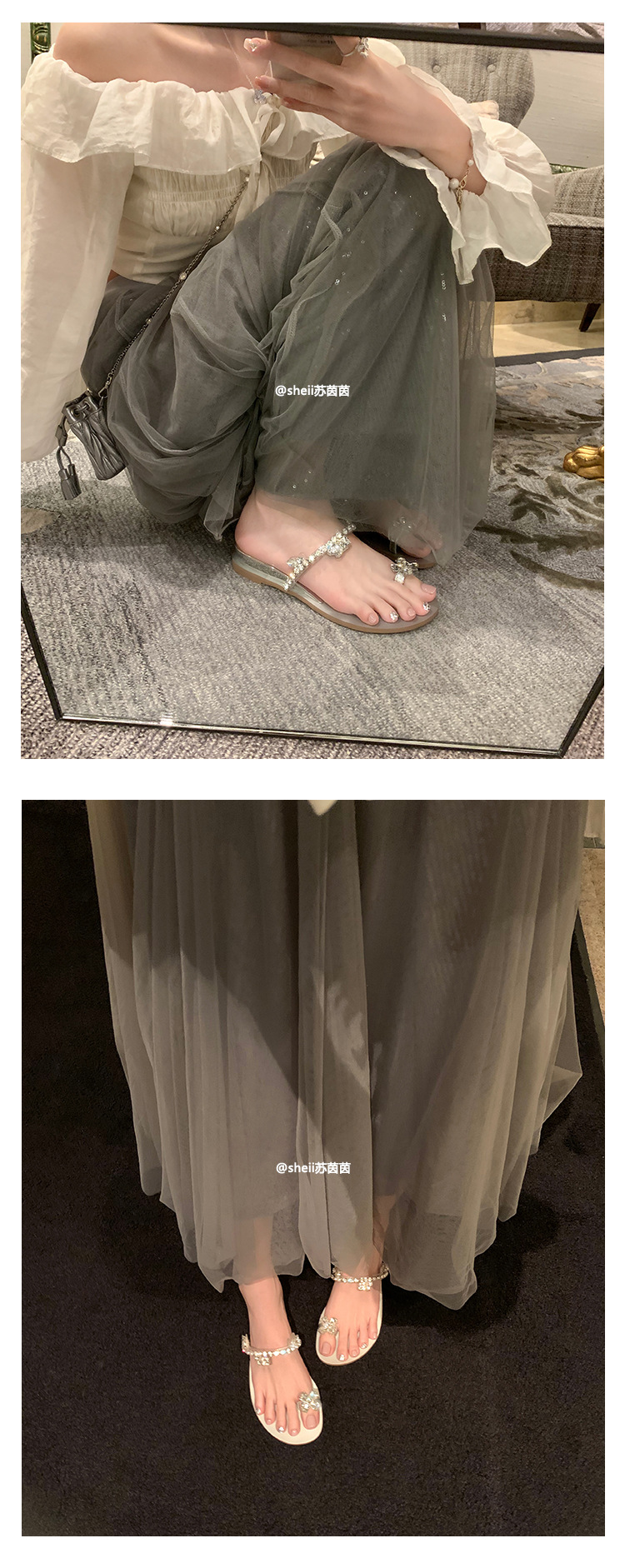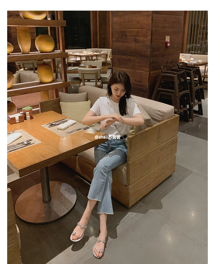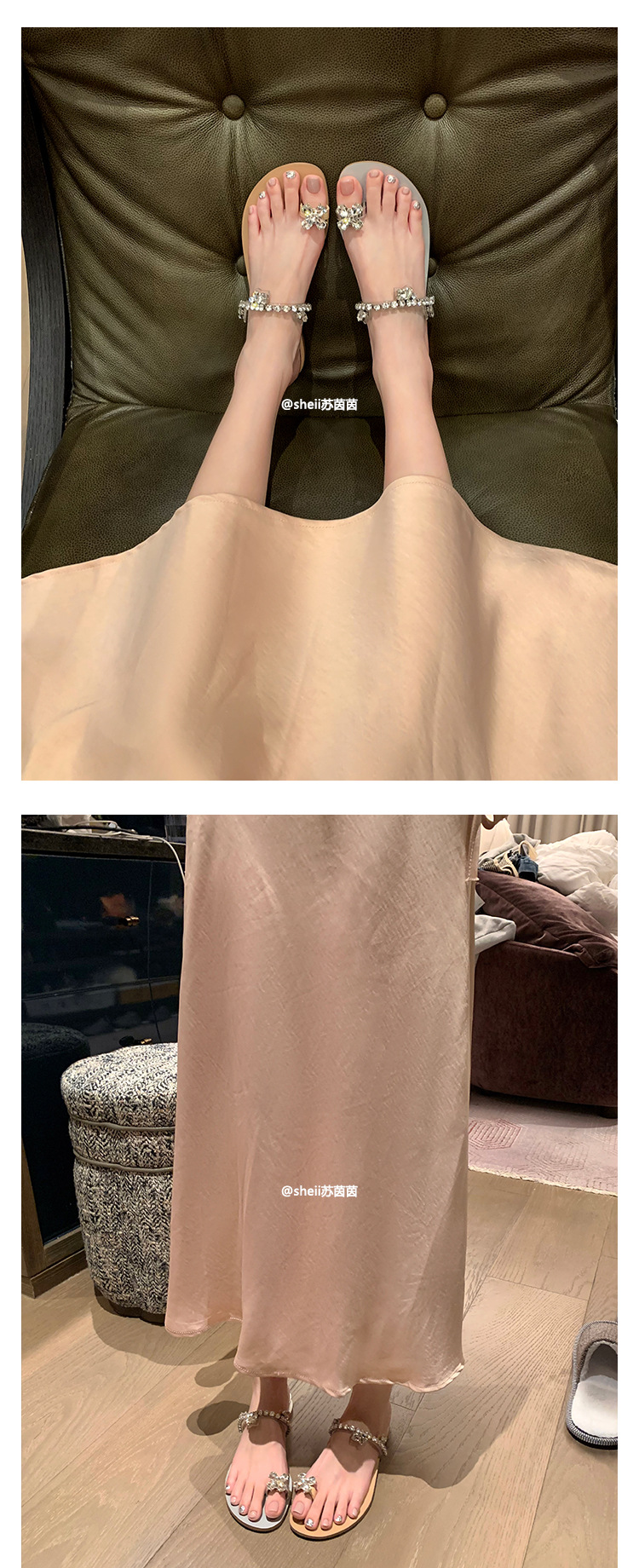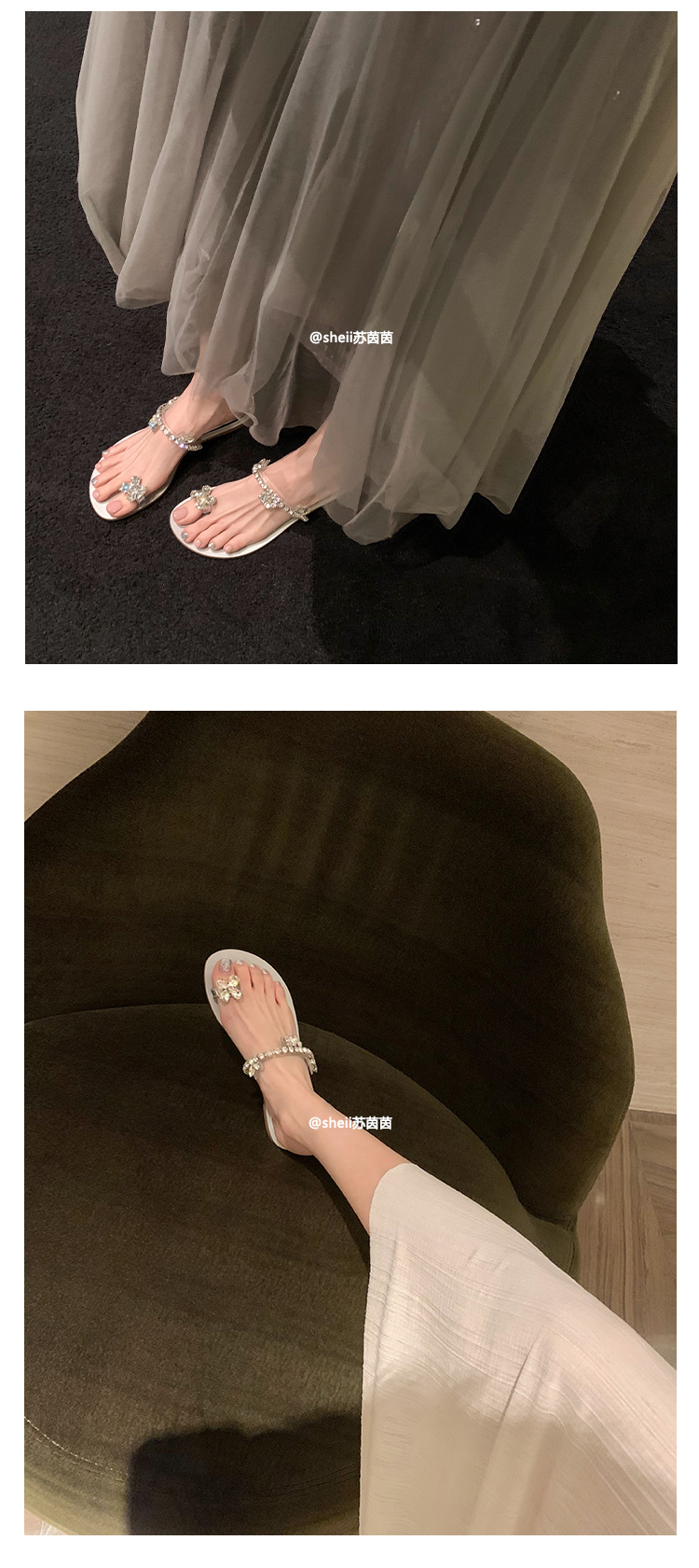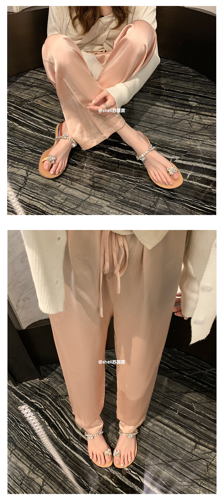 [Su Yinyin 동일] 여름-꽃 다이아몬드 버클 웨지 힐 세트 발가락 플랫 슬리퍼 여름 여성용 샌들