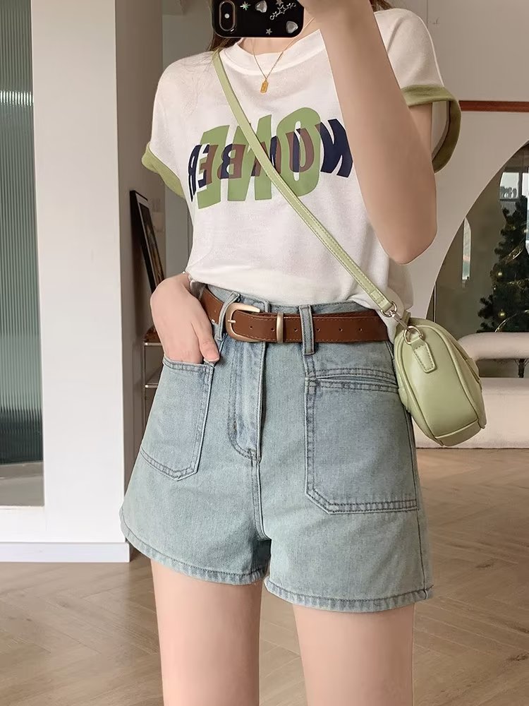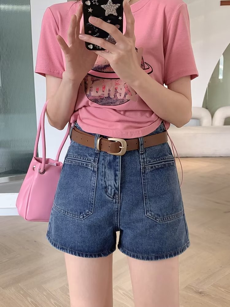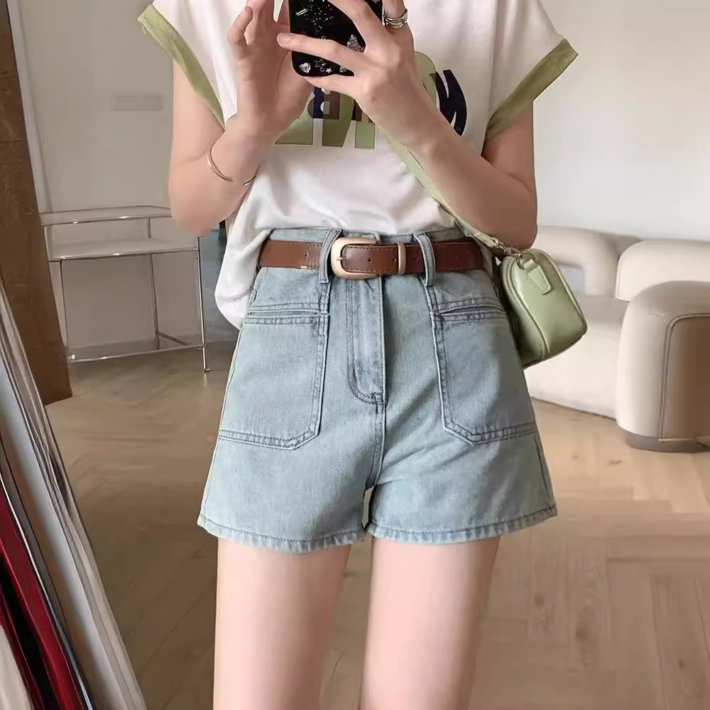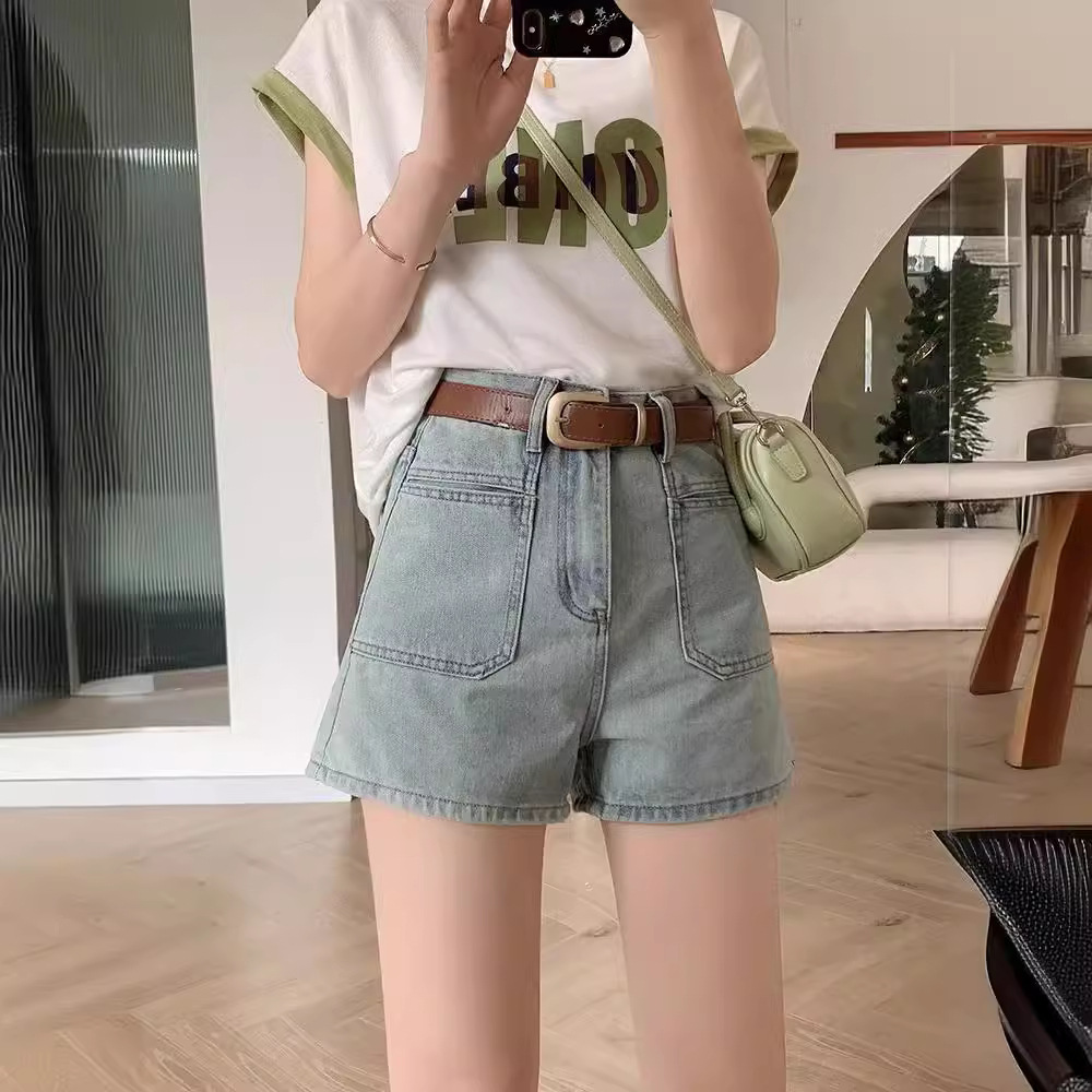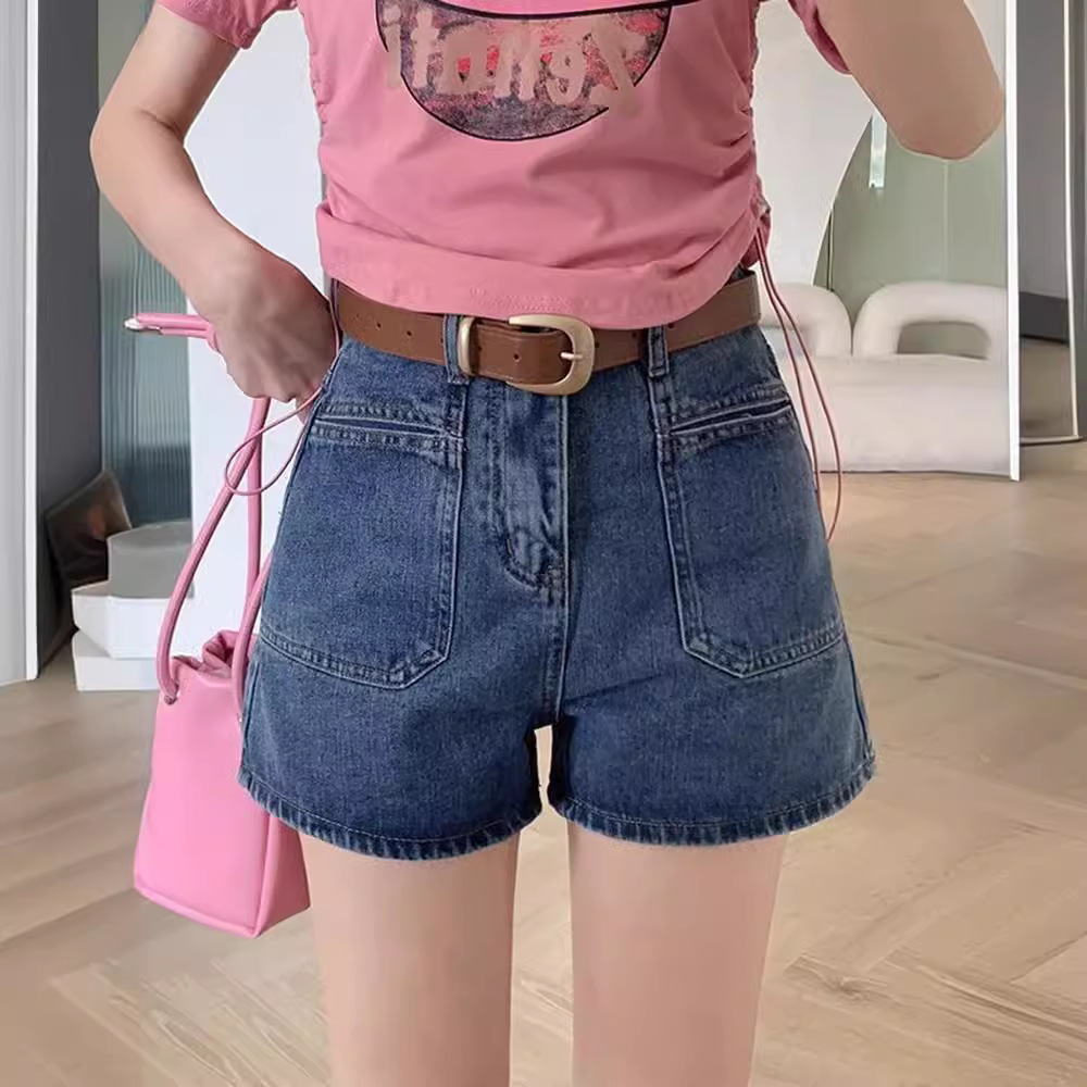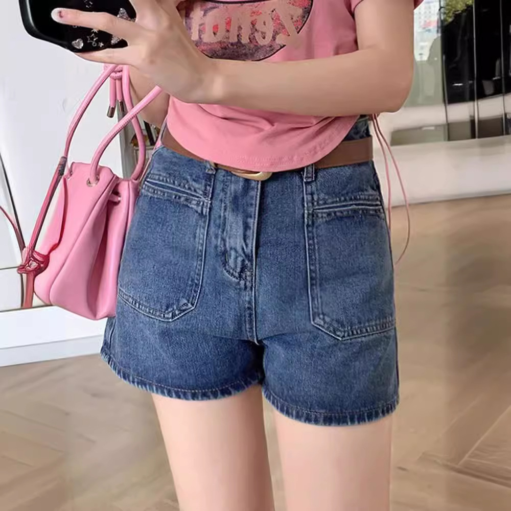 여성용 신상 데님 반바지, 여름용 하이웨이스트 디자인 포켓 일자핏 바지, 슬림하고 루즈한 A라인 와이드 팬츠