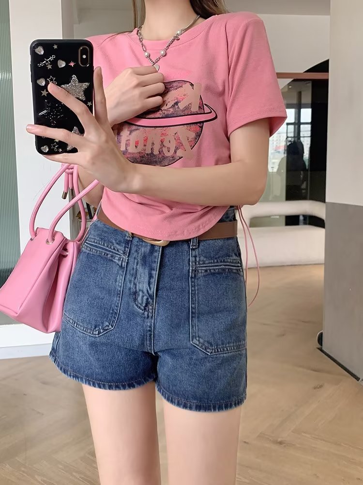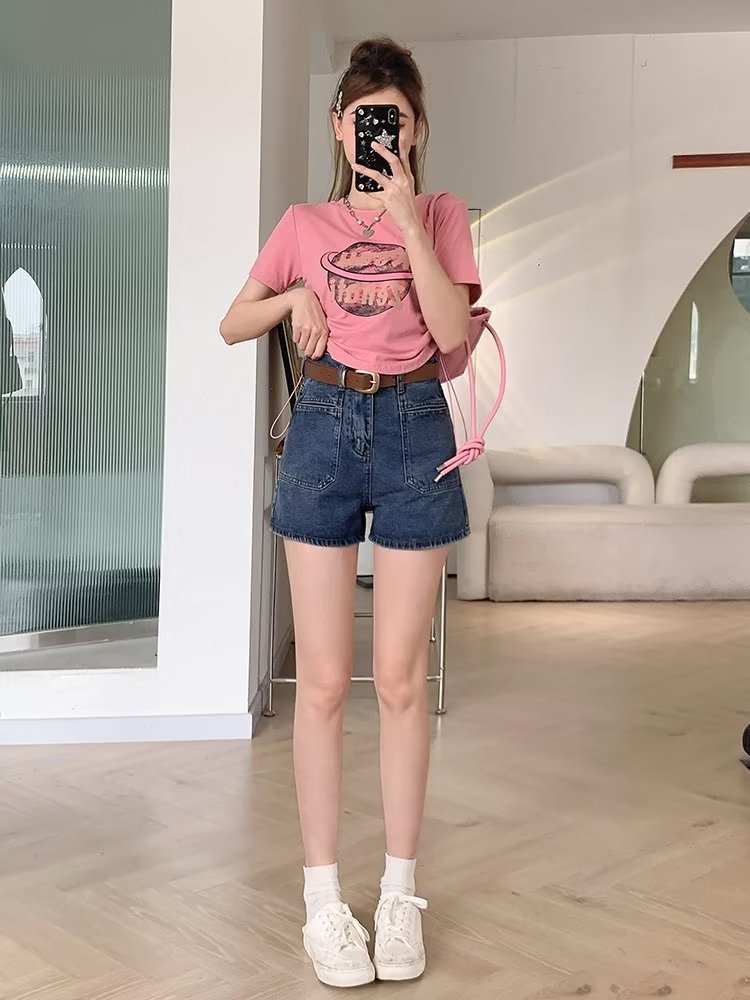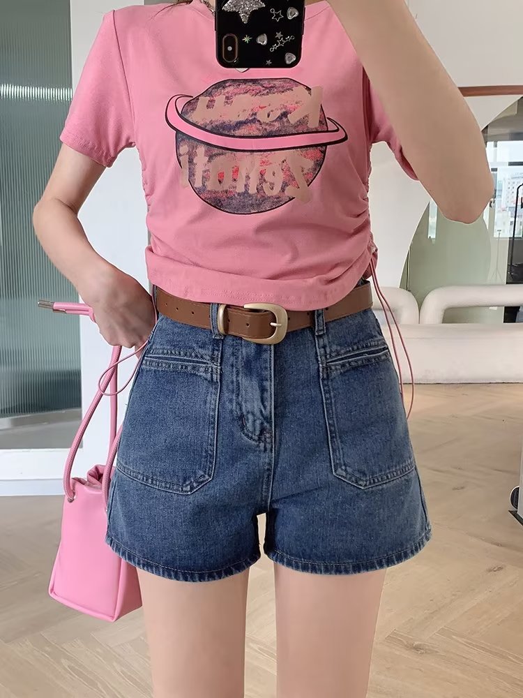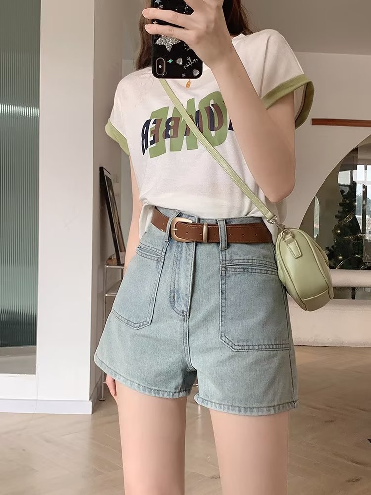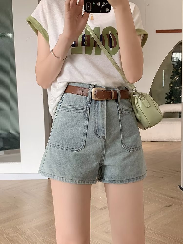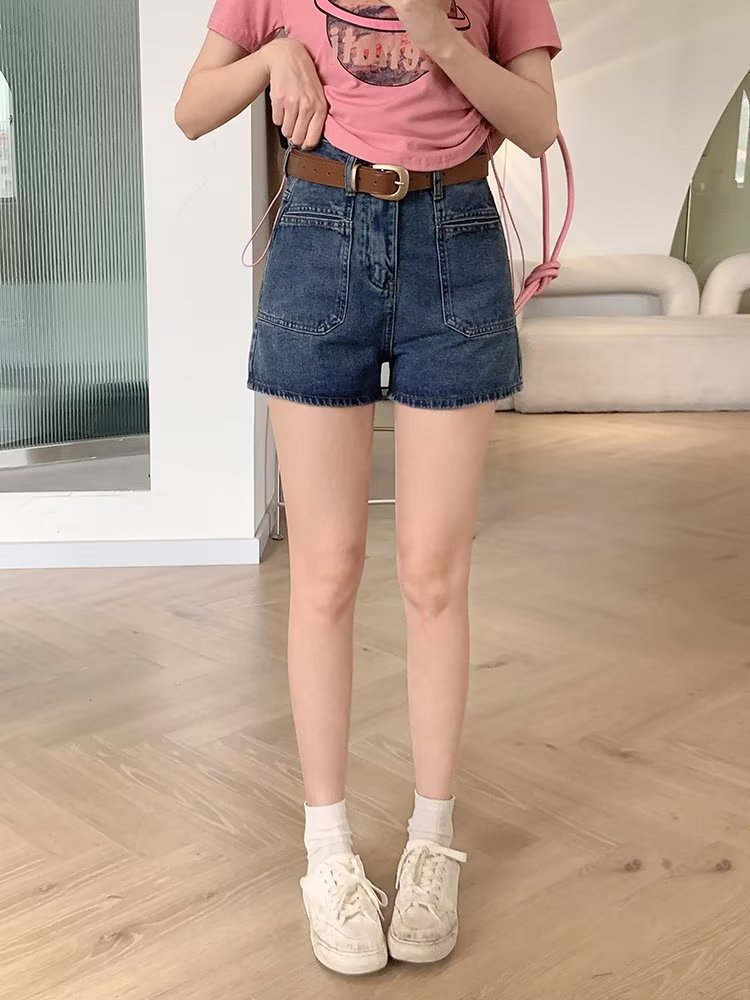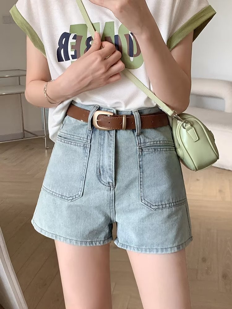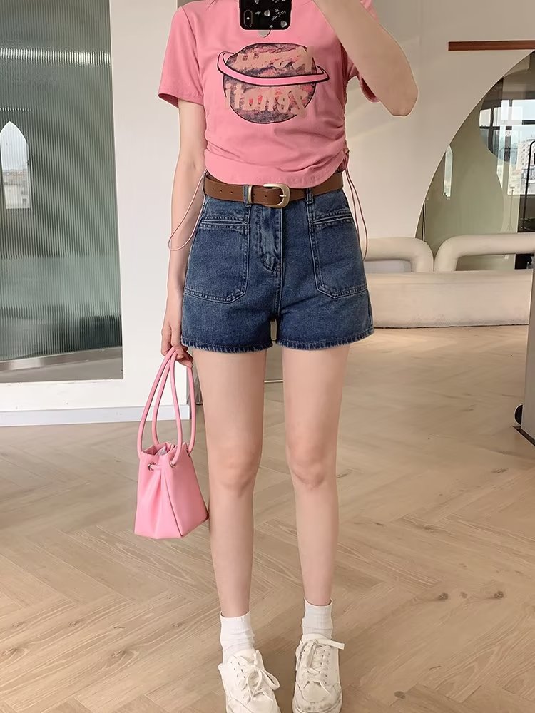 여성용 신상 데님 반바지, 여름용 하이웨이스트 디자인 포켓 일자핏 바지, 슬림하고 루즈한 A라인 와이드 팬츠