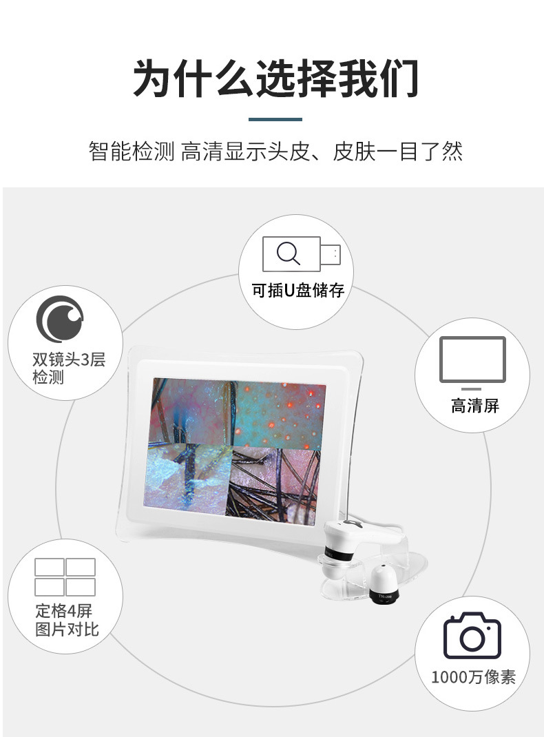 공장 직접 공급 HD 스마트 두피 테스터 피부 테스터 두피 모낭 검출기 올인원 도매