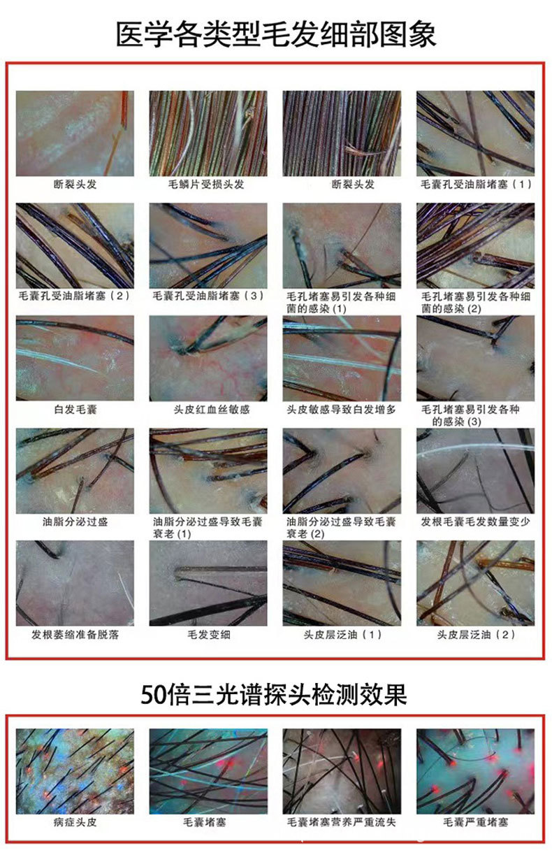 17 인치 머리 모피 가방 탐지기 헤어 스킨 헤어 테스트 이발소 뷰티 살롱 HD 스크린 국경