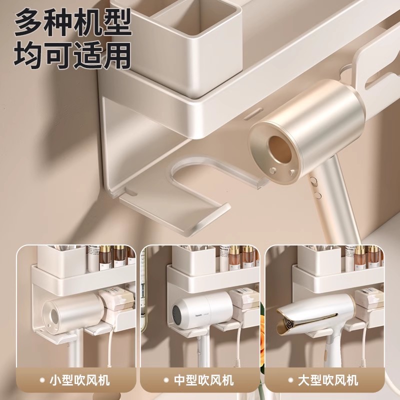 벽걸이 우유 화이트 헤어 드라이어 랙 펀치 프리 화장실 헤어 드라이어 욕실 라이트 럭셔리 브래킷 스토리지 랙