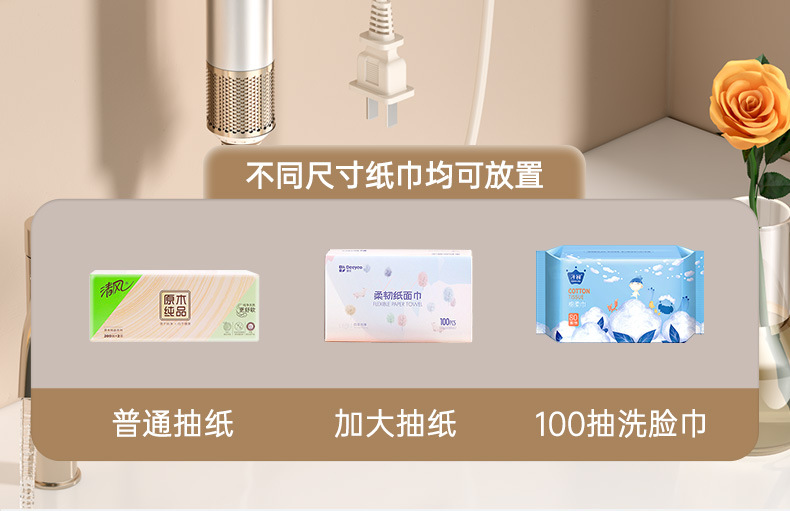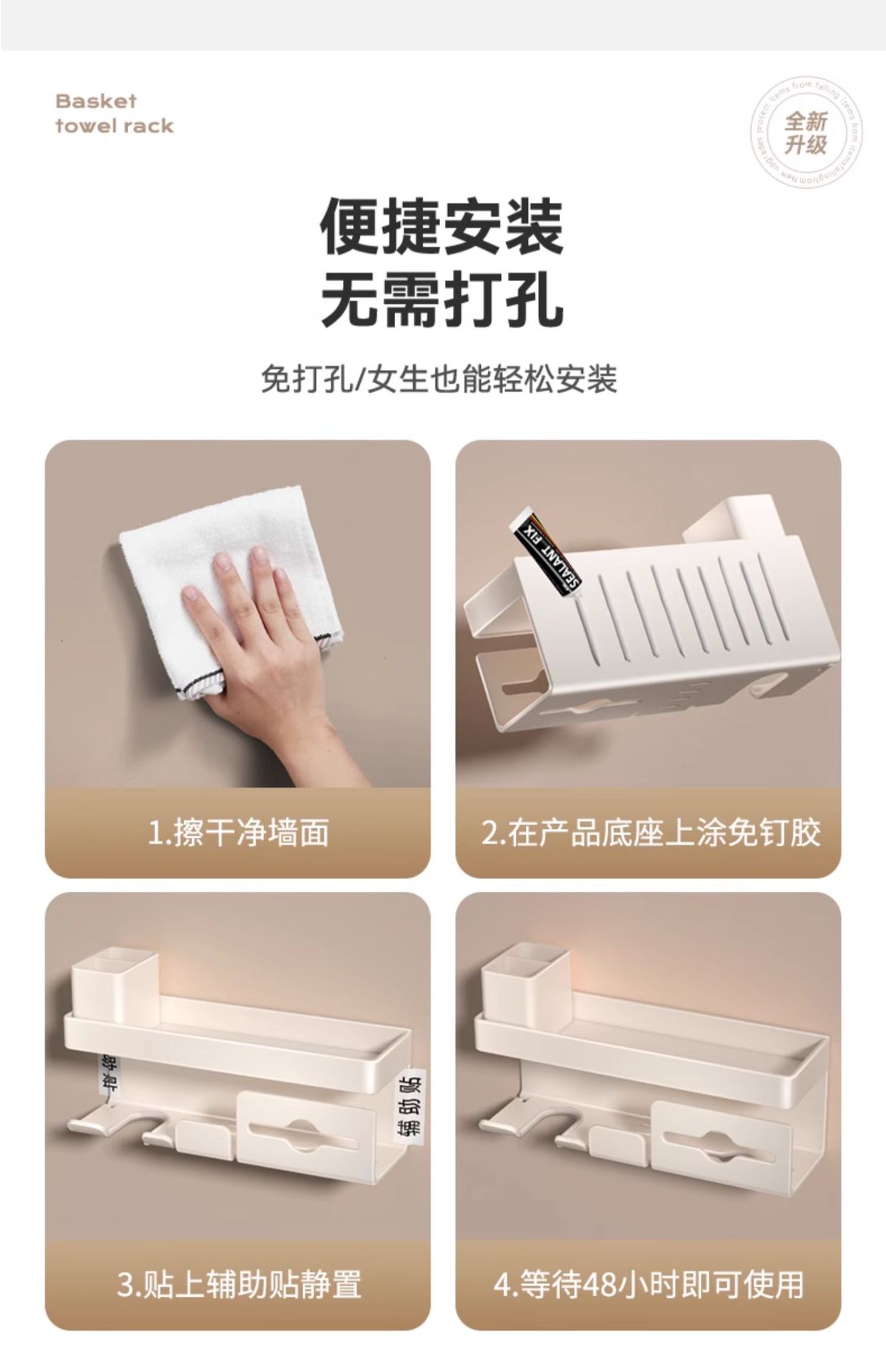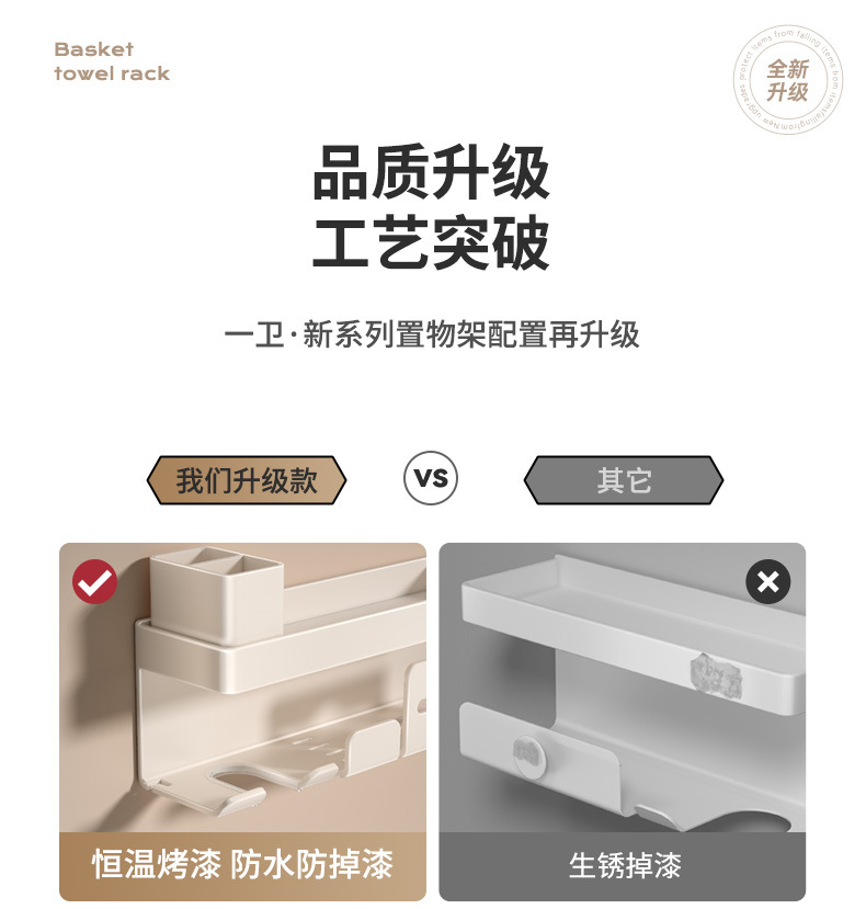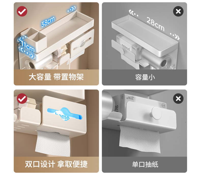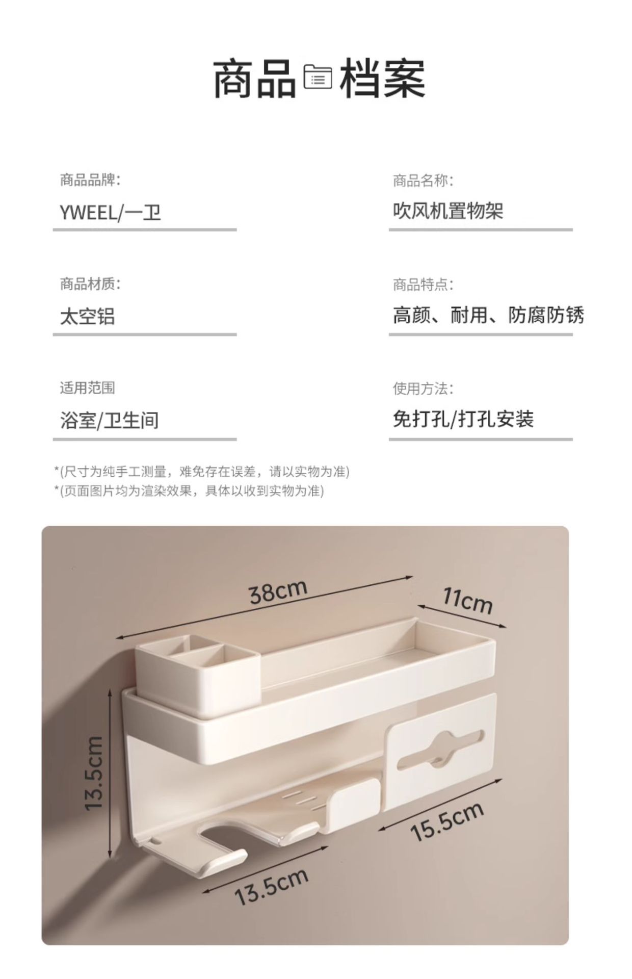 밀크화이트 헤어드라이어홀더 + 수납선반 + 빗통 + 걸이끈이 달린 종이타월홀더-01049