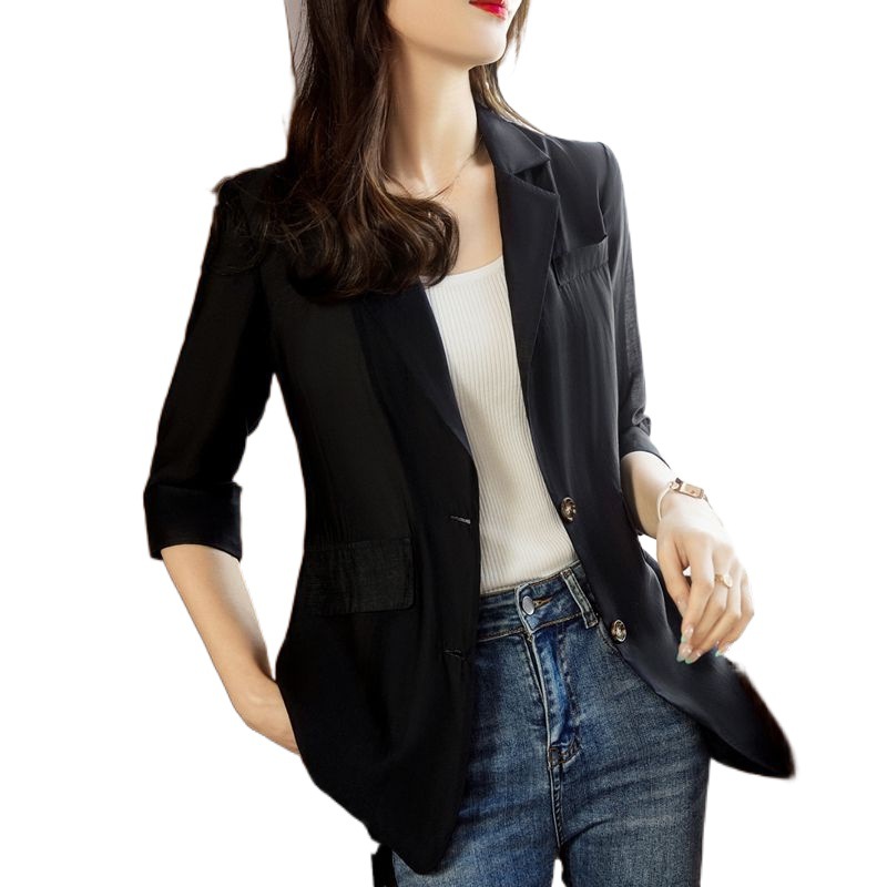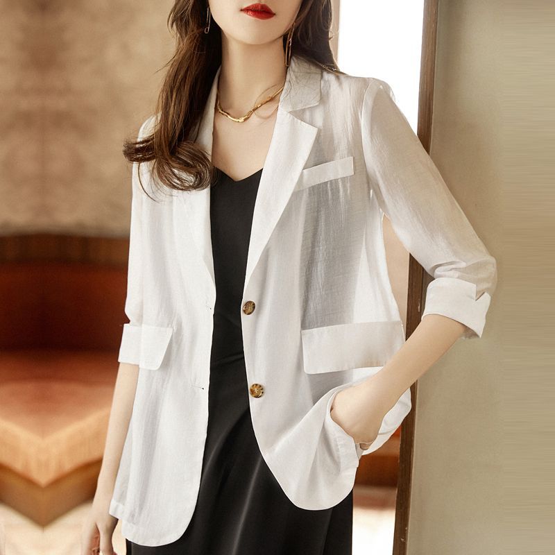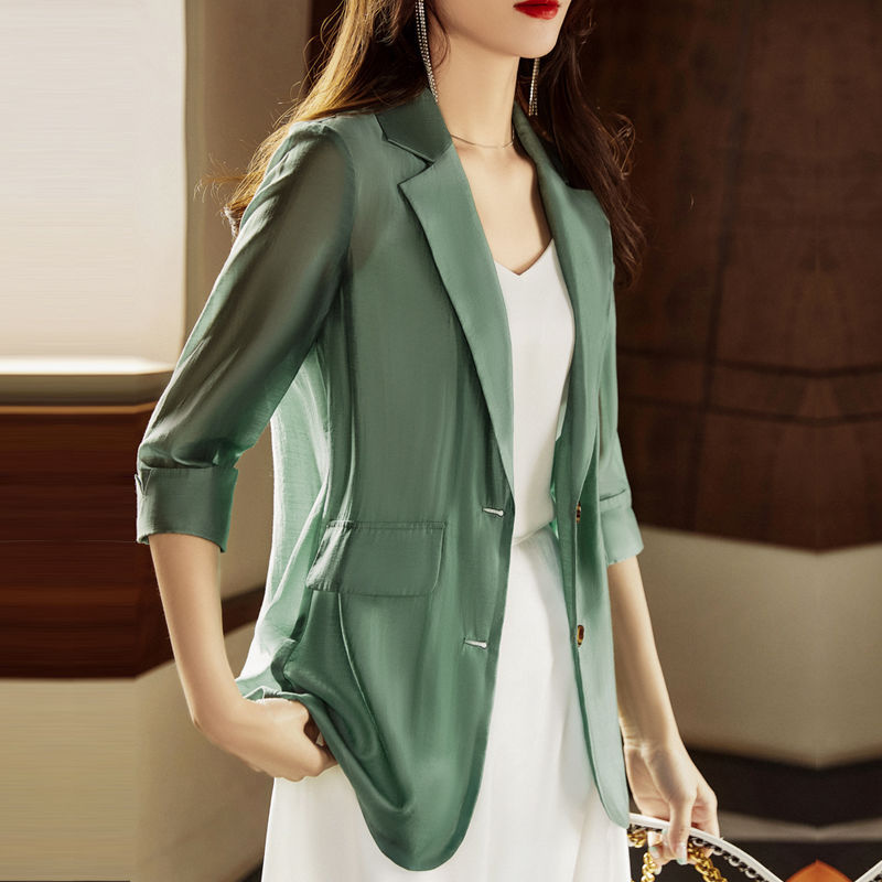 2024 봄과 여름 얇은 세트 재킷 여성 디자인 센스 틈새 패션 우아한 느슨한 쉬폰 선 스크린 셔츠