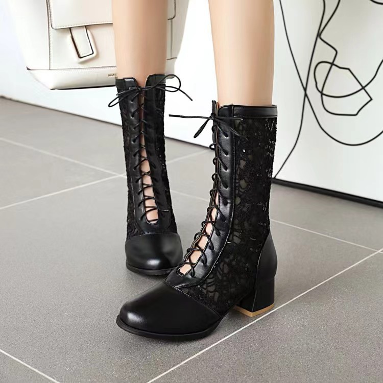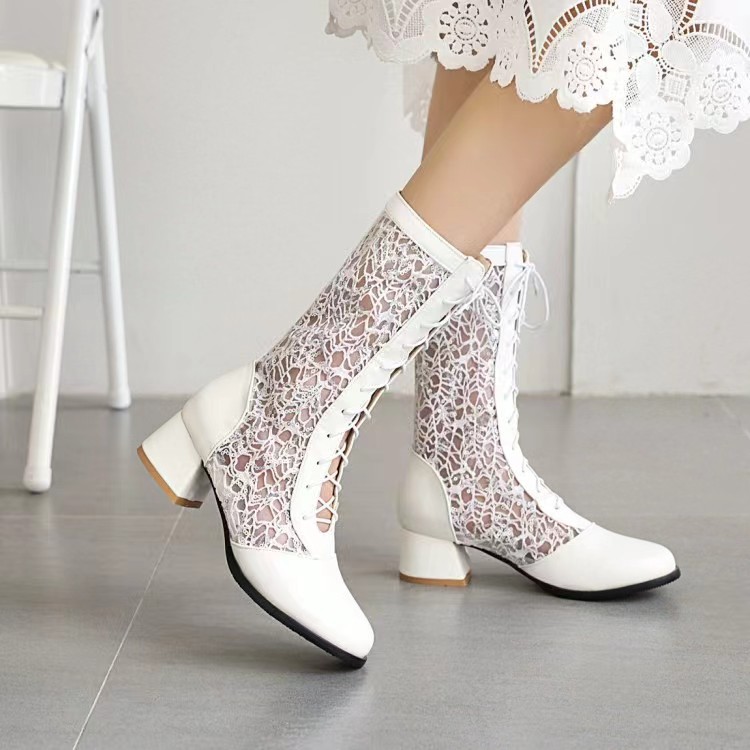 40-43 국경 간 플러스 사이즈 봄 및 여름 할로우 여성용 부츠 두꺼운 힐 레이스 업 쇼트 부츠 Martins 하이 탑 쿨 부츠 H631