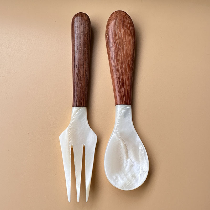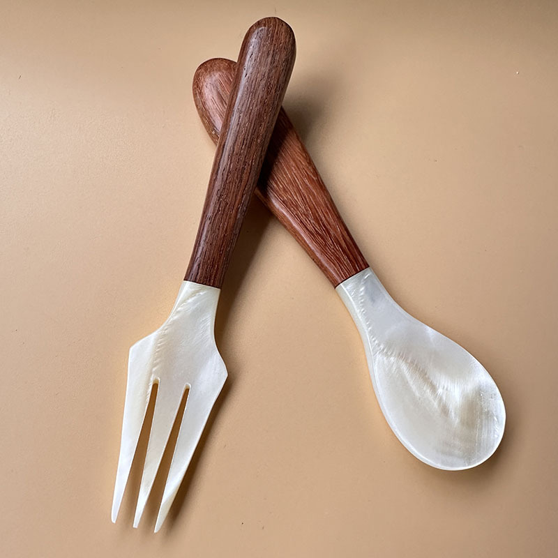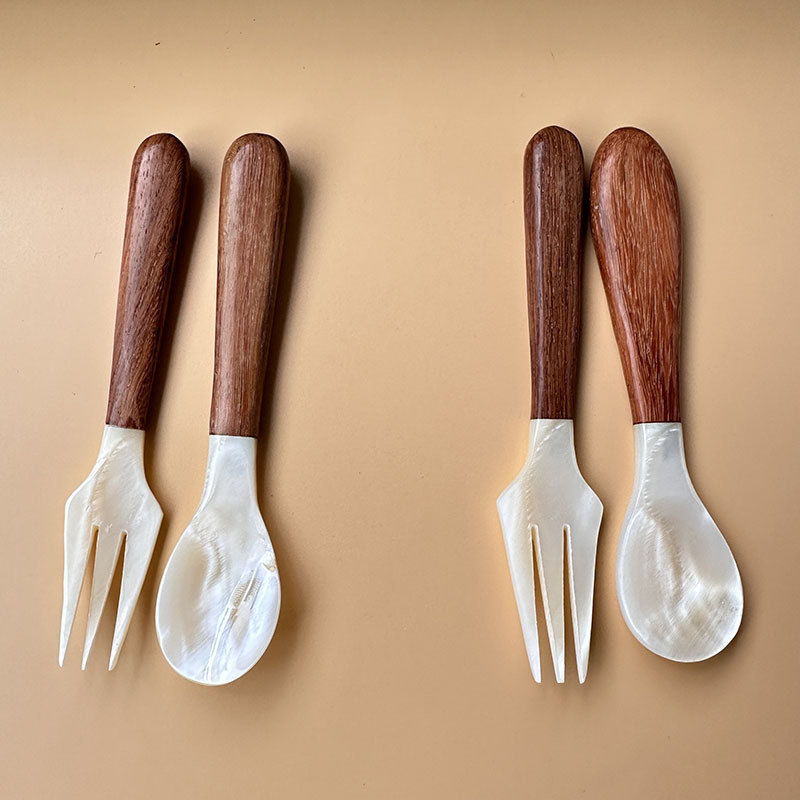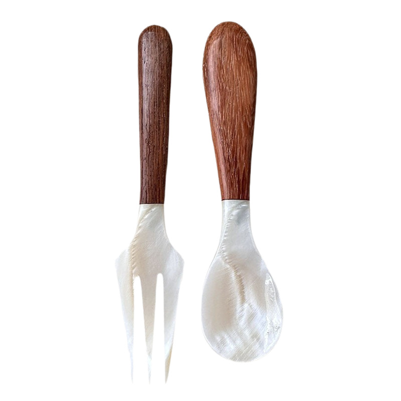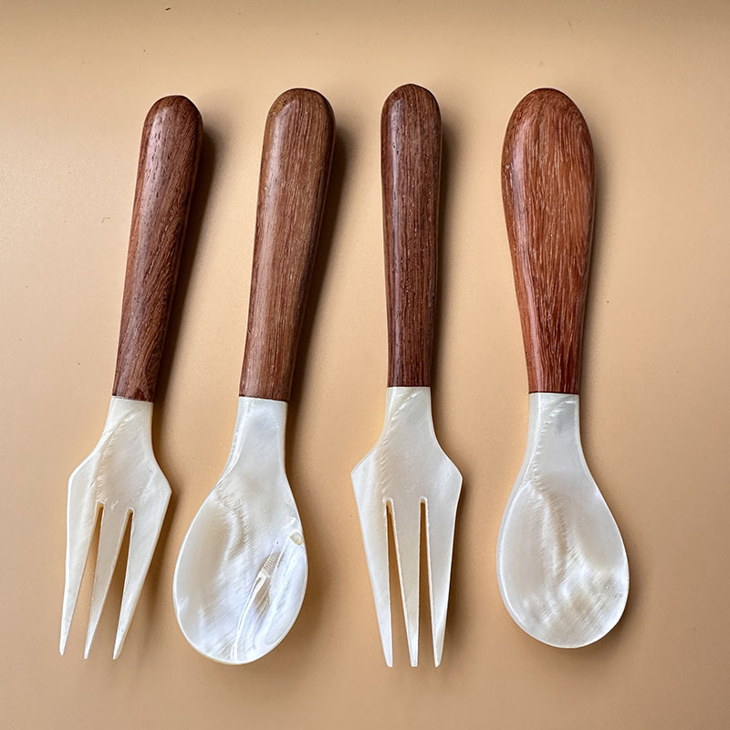 조개껍질 숟가락, 히비스커스 나무 손잡이 12cm 숟가락 및 포크 세트, 마스크 숟가락, 차 포크, 공예품 세트, 흰색