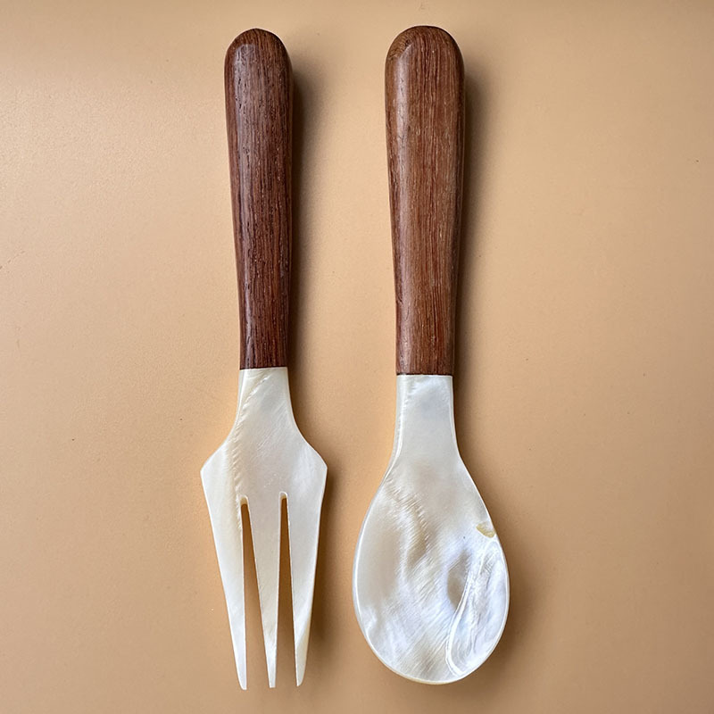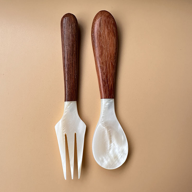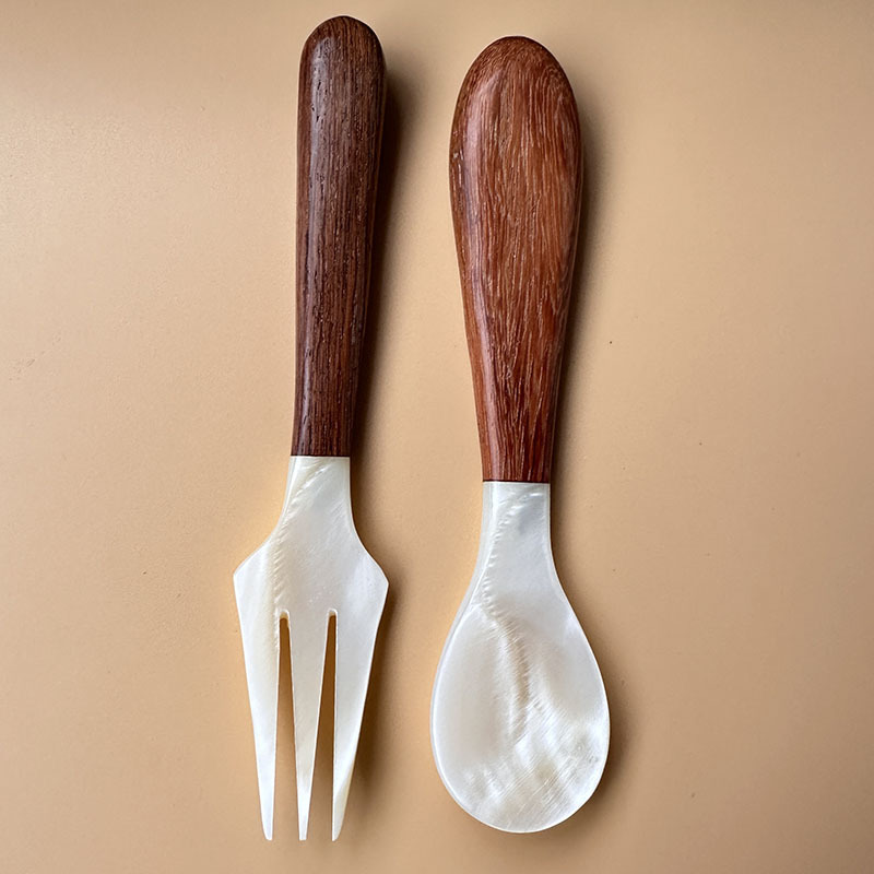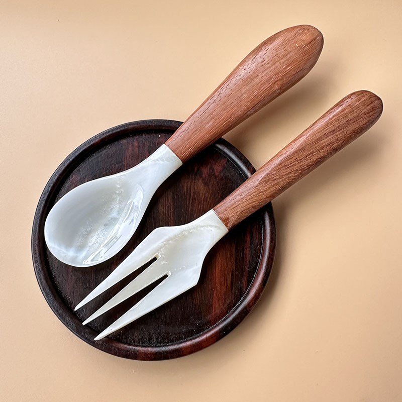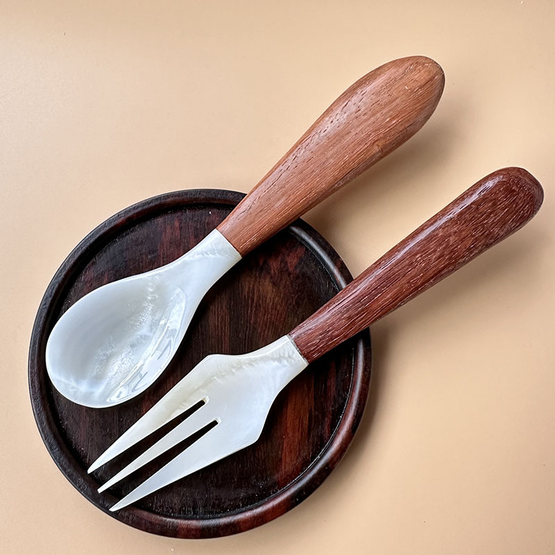 조개껍질 숟가락, 히비스커스 나무 손잡이 12cm 숟가락 및 포크 세트, 마스크 숟가락, 차 포크, 공예품 세트, 흰색