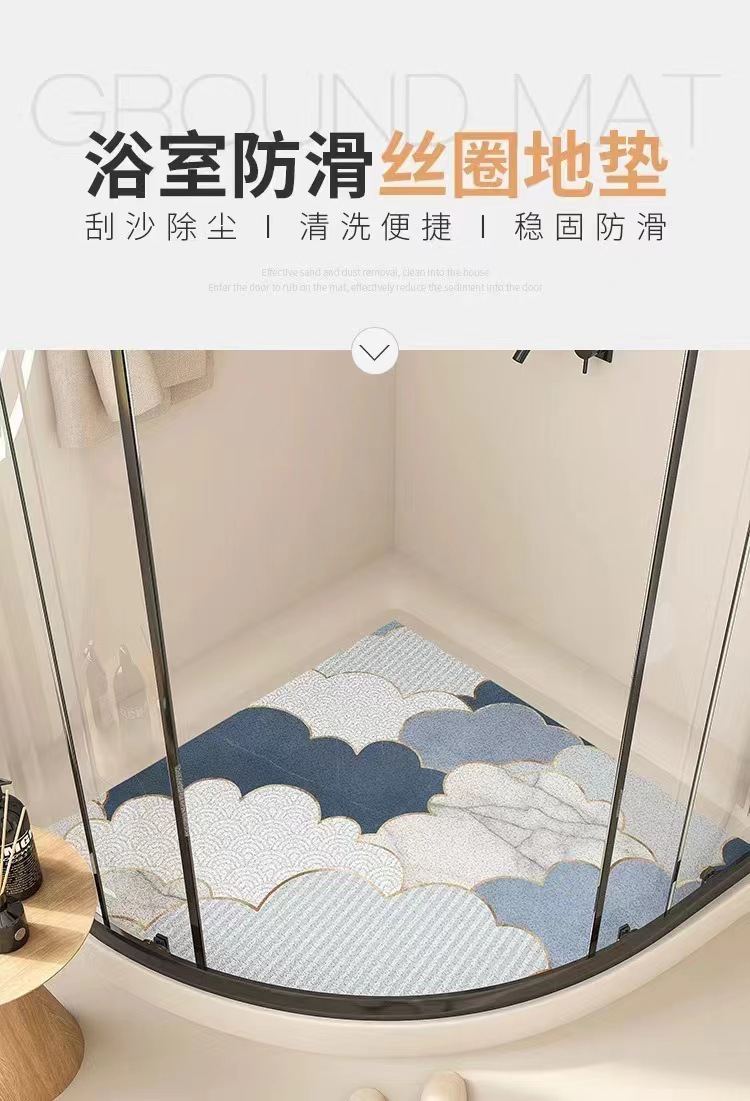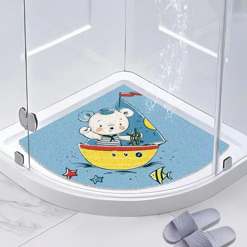 가정용 욕실 미끄럼 방지 바닥 매트 작은 아파트 화장실 어린이 낙하 방지 팬 모양의 실크 링 바닥 매트 국경