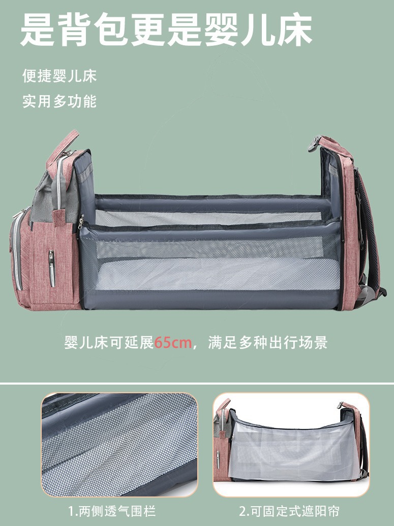 국경 간 어머니 가방 다기능 엄마와 아기 가방 배낭 우유 가방 접이식 침대 기저귀 가방 대용량 미라 가방