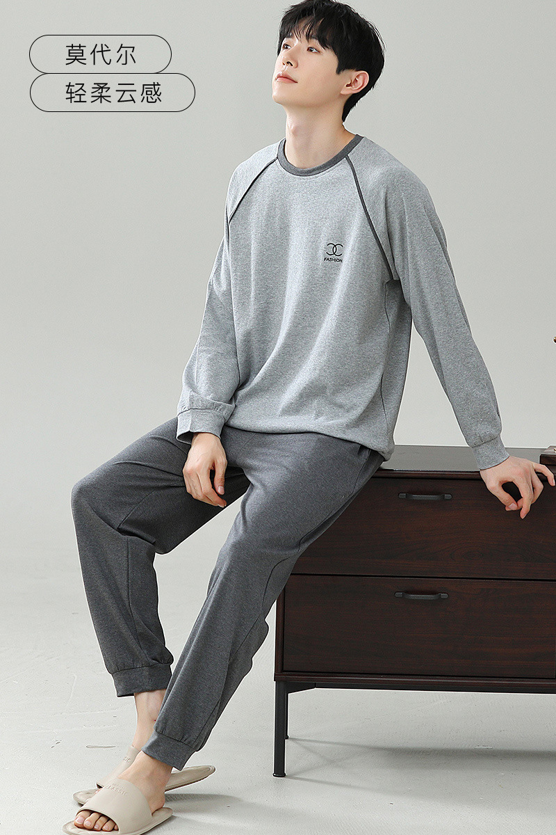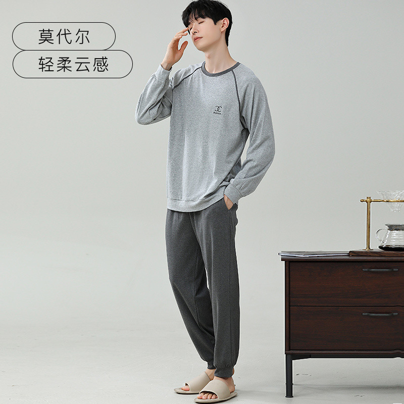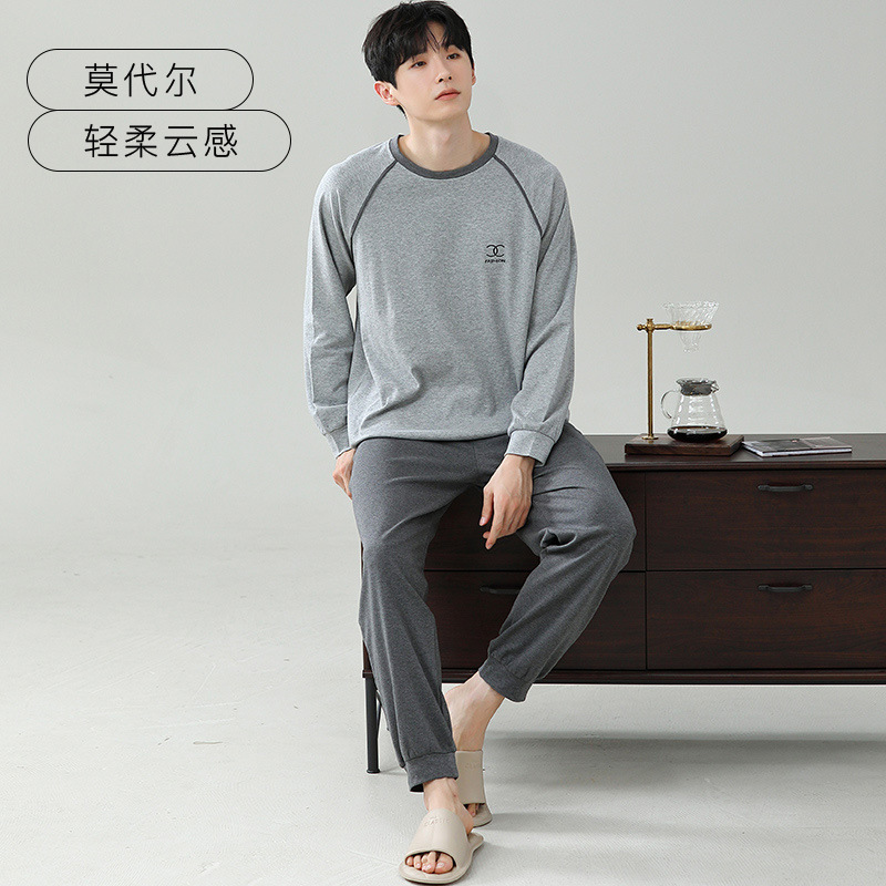 하이 퀄리티 슈퍼 소프트 잠옷 봄과 가을 남자 하이 엔드 긴 소매 모달 세트 의상 홈 옷베이스
