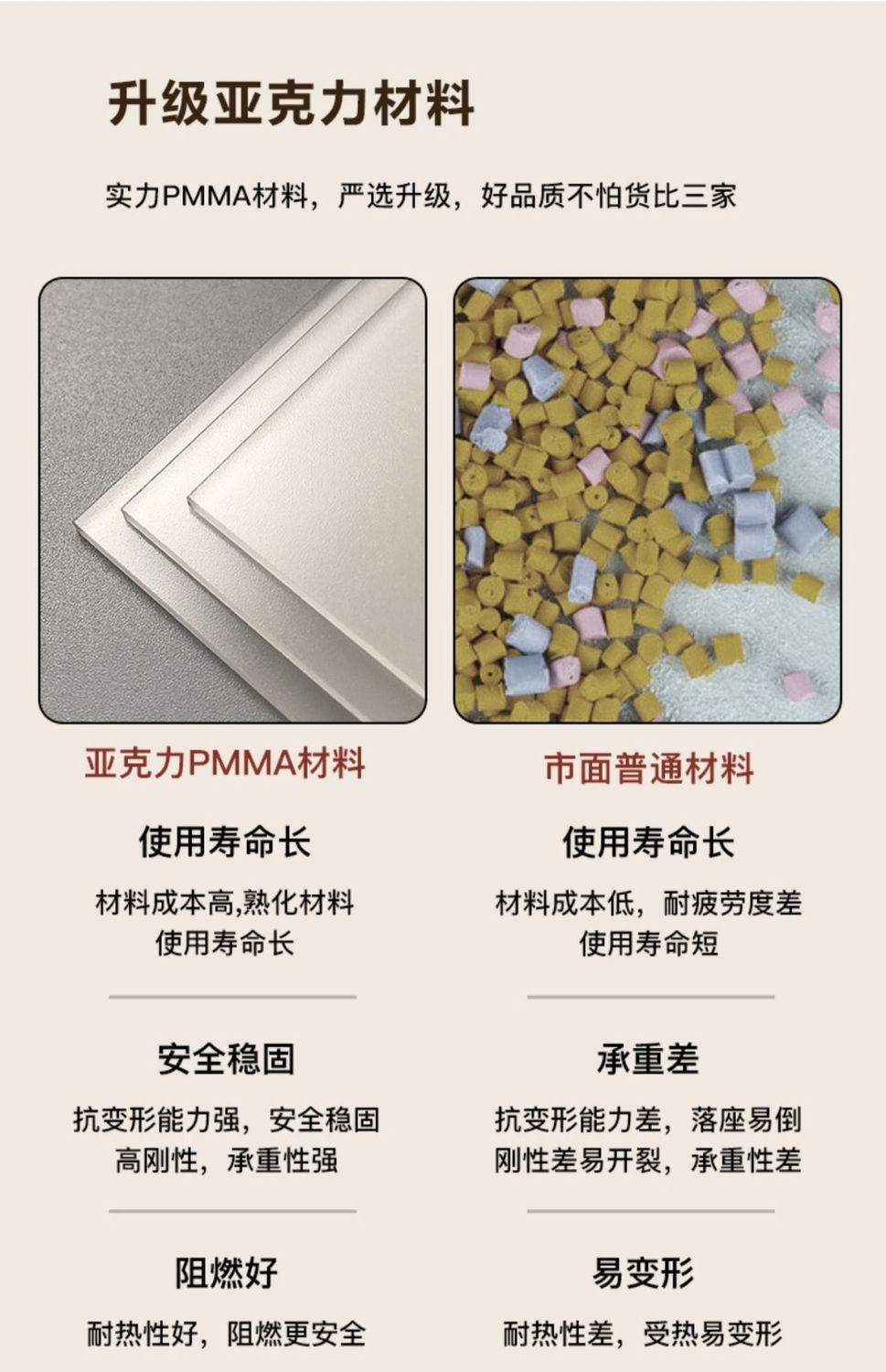 갈색의 두꺼워지고 업그레이드된 PMMA 소재는 내하중 300kg