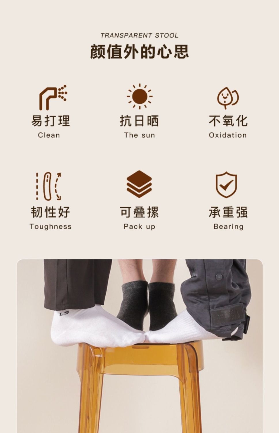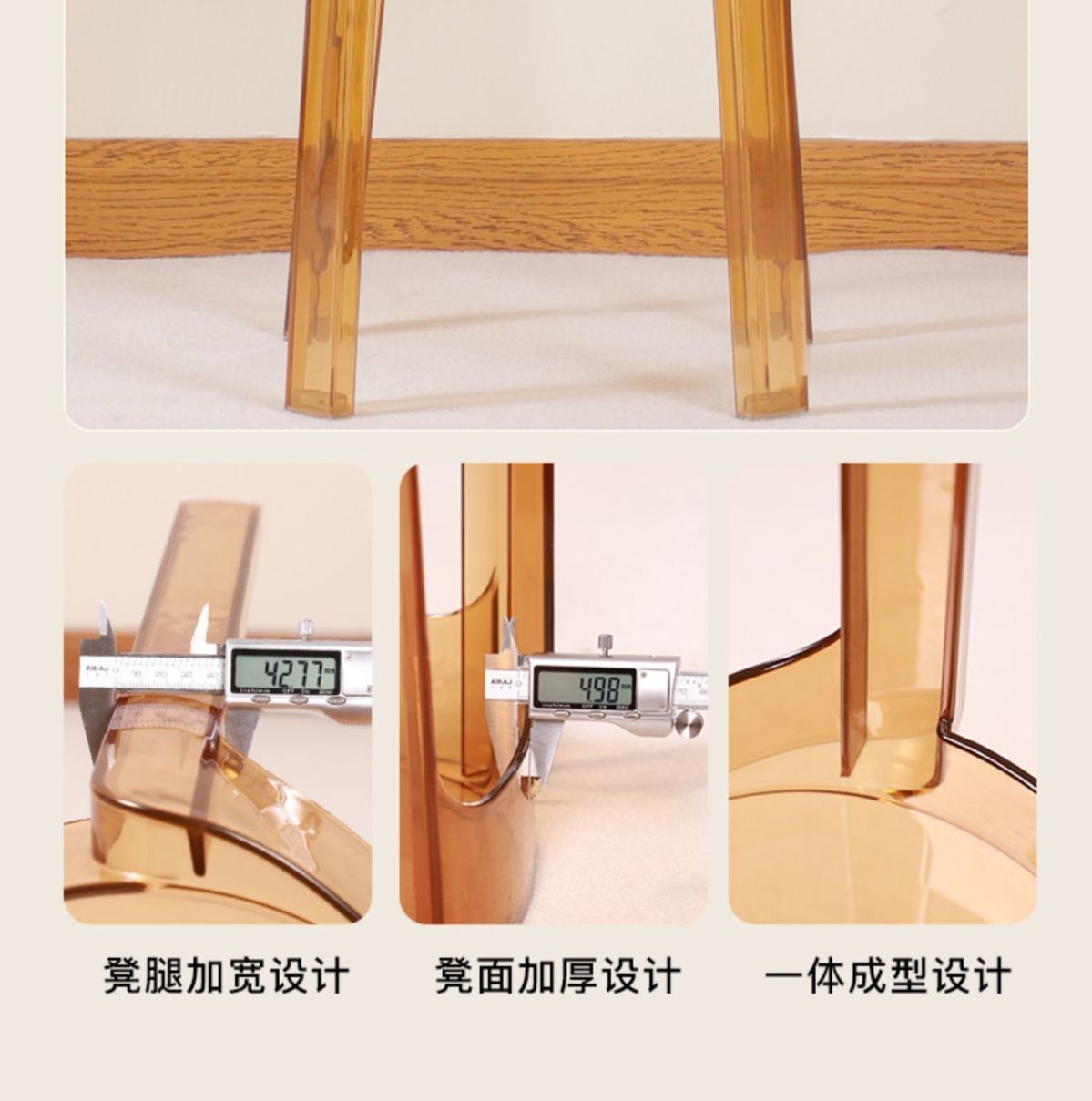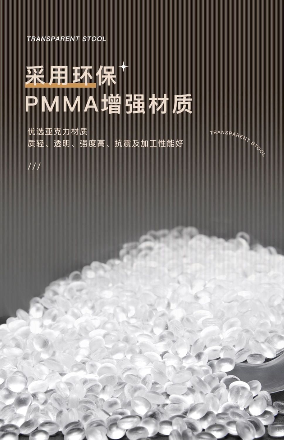 호박색으로 두꺼워지고 업그레이드된 PMMA 소재는 내하중 300kg