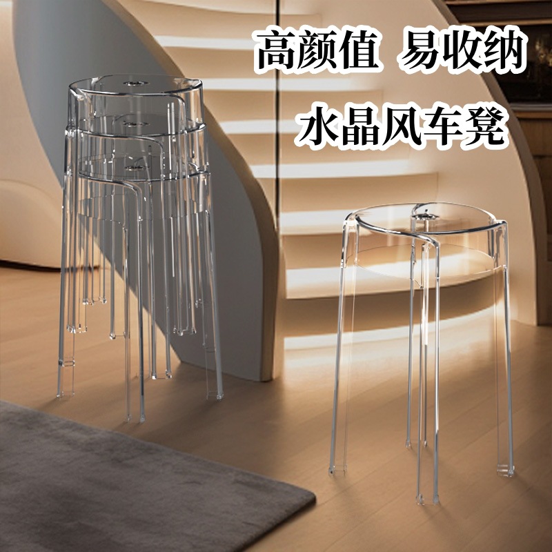 심플 라이트 럭셔리 벤치 상업용 두껍게 쌓을 수있는 투명한 둥근 의자 아크릴 의자 플라스틱 의자 가구
