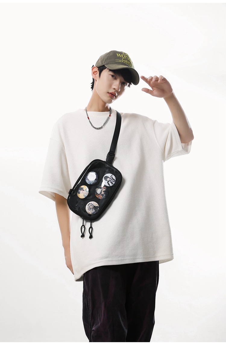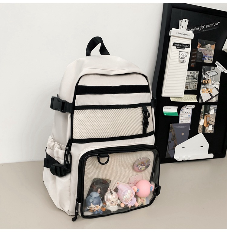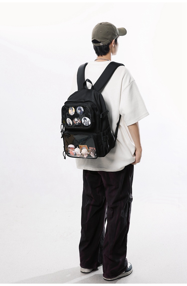 통백(통백) 이차원 투피스 세트, 양면 사용 가능, 단면 사용 가능, 탈부착형 다기능 PVC 포켓 DIY 대용량 책가방