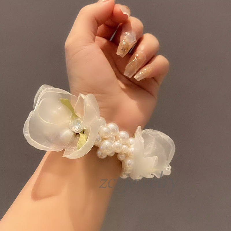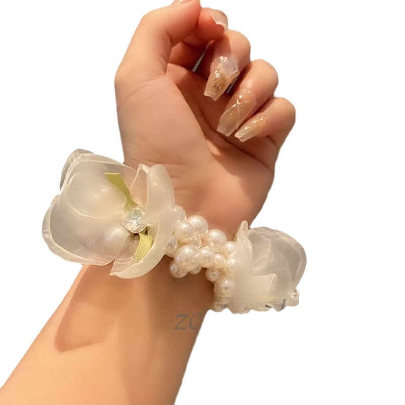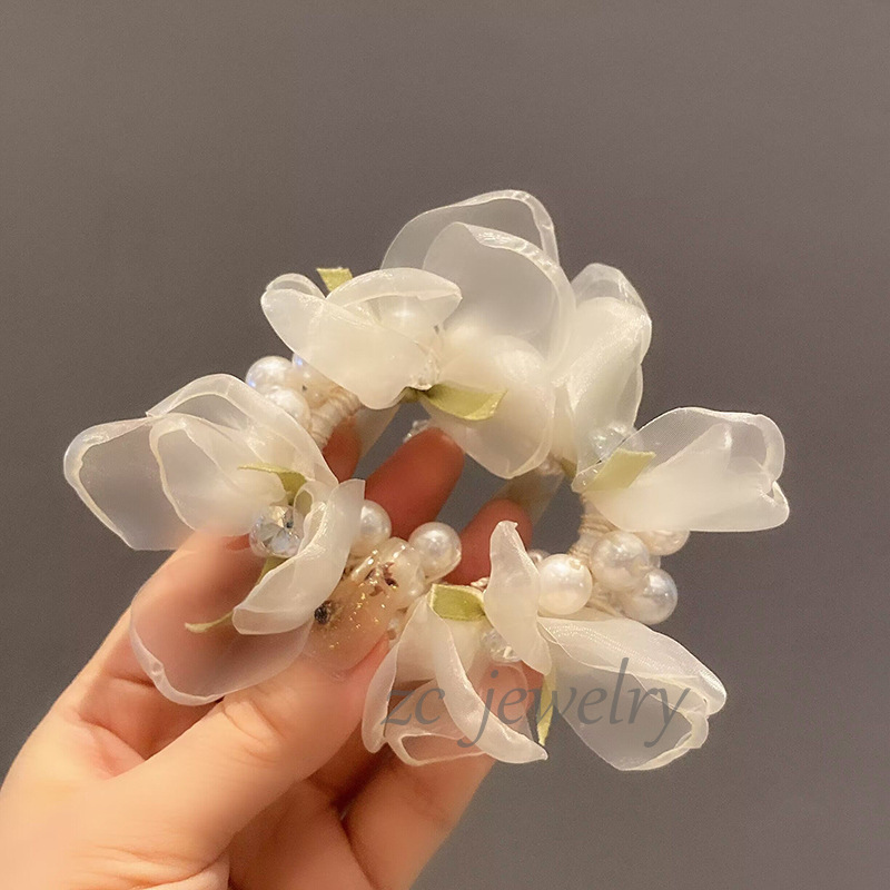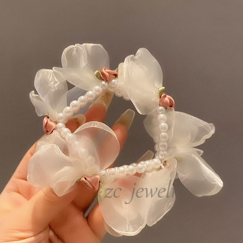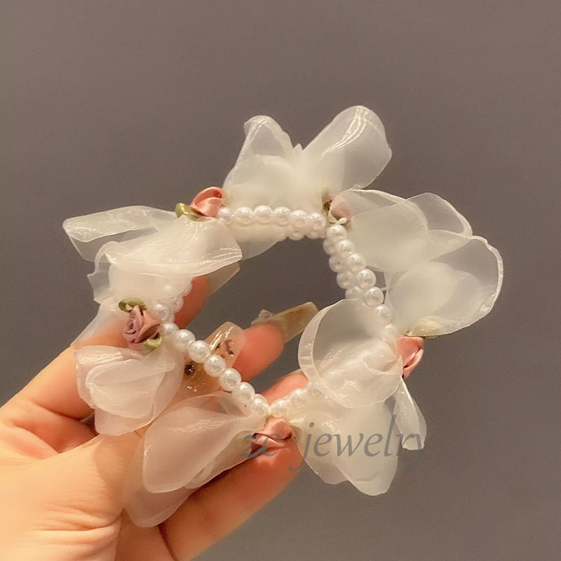 달콤한 모리 스타일 진주 현악 꽃잎 고무 밴드 하이 엔드 감각 틈새 팔찌 등 머리 넥타이 로프 우아한 헤어 액세서리