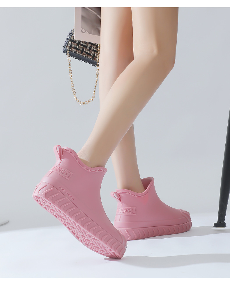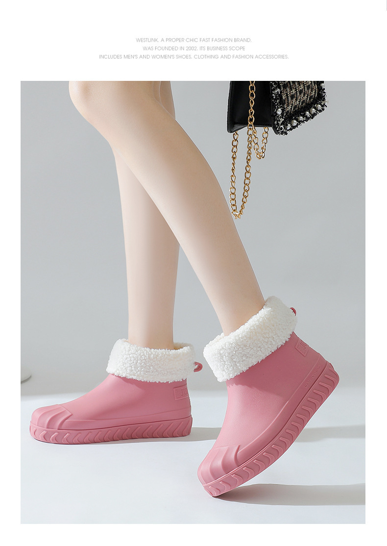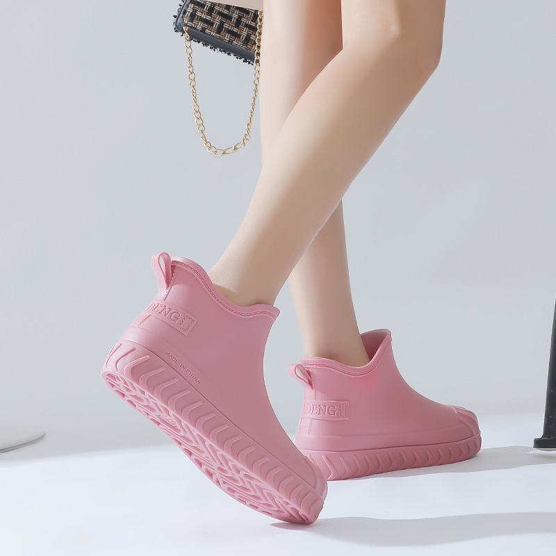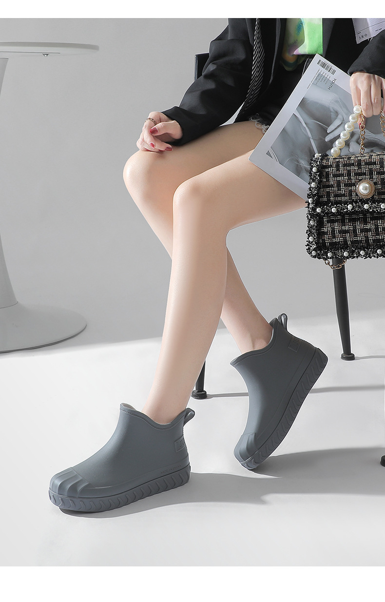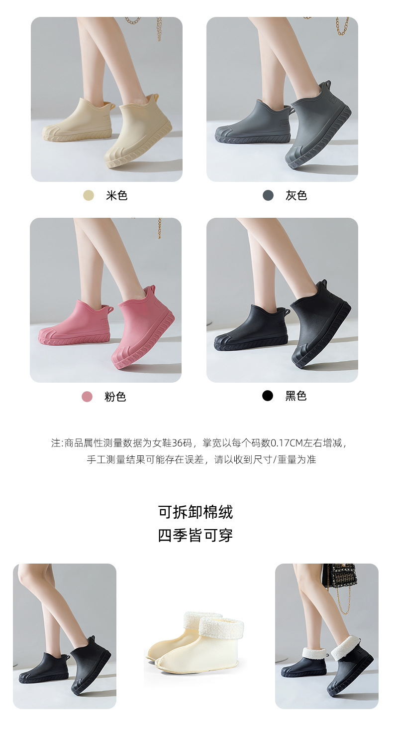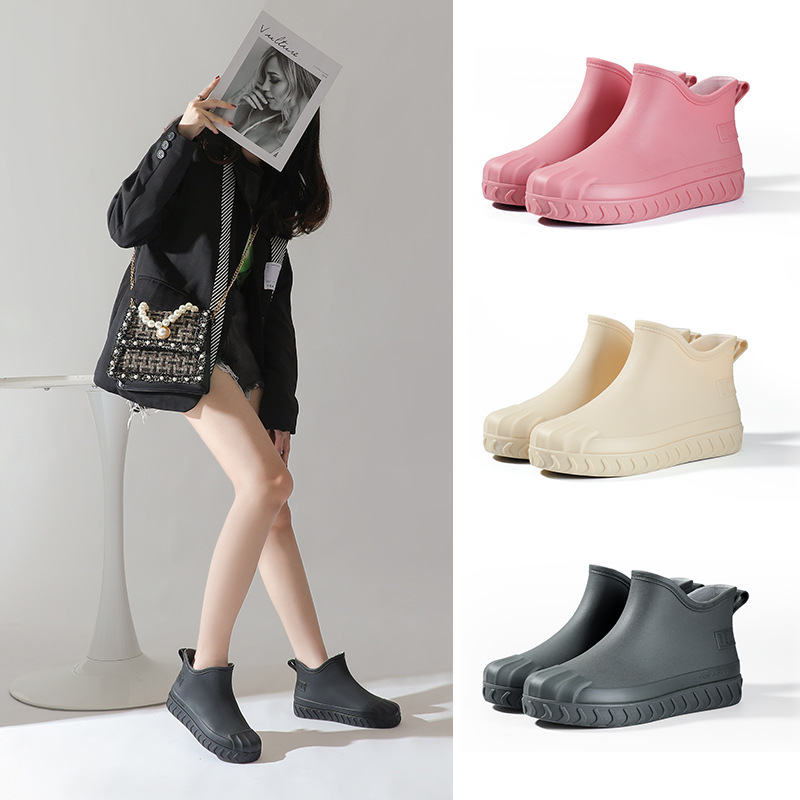 2024년 신상 여성용 패션 레인부츠, 주방 작업용 숏부츠, 미끄럼 방지, 내마모성, 플리스 안감, 방수, 다용도