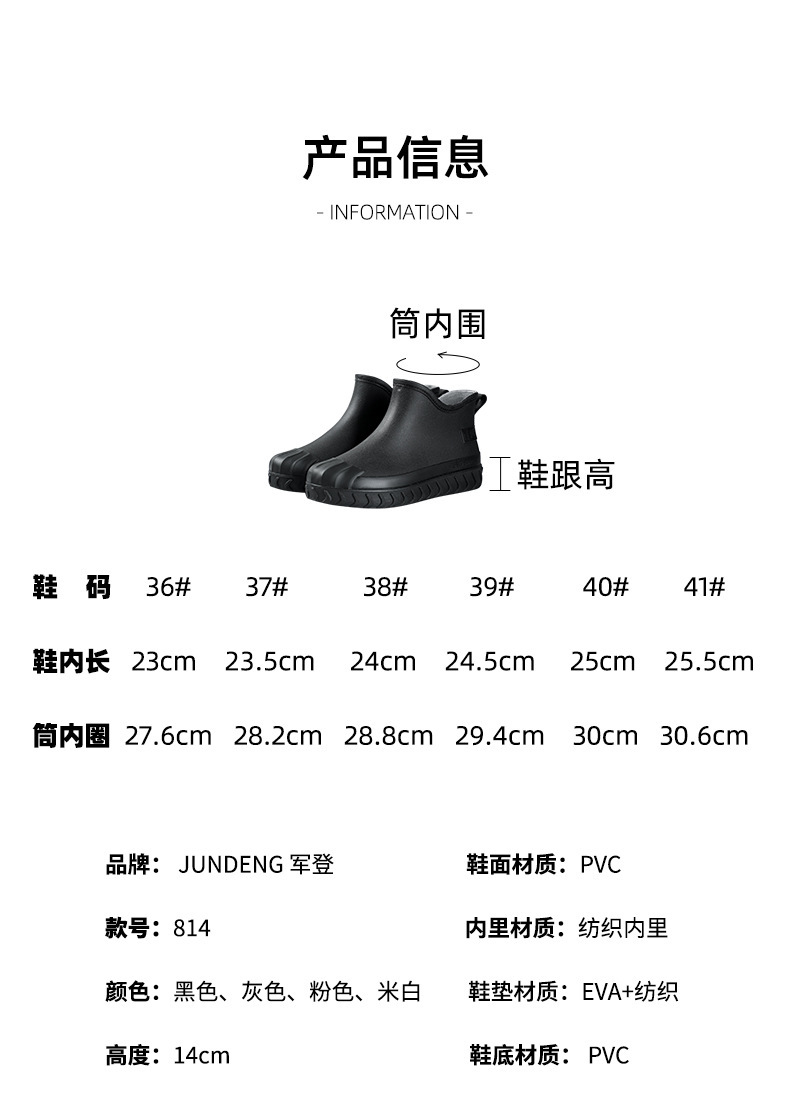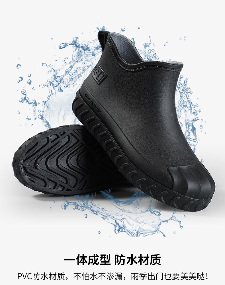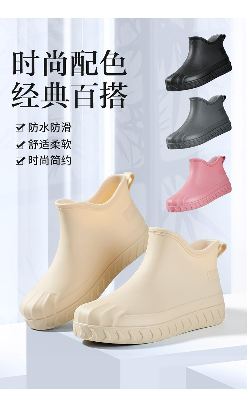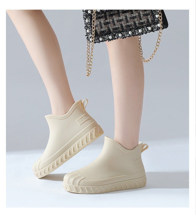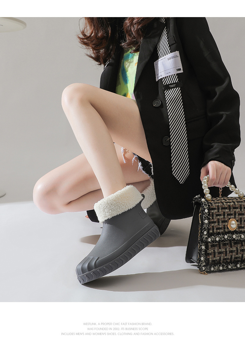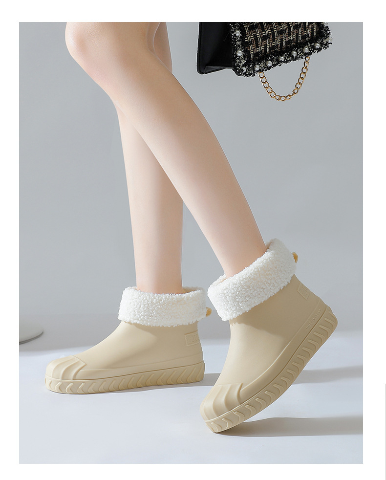 2024년 신상 여성용 패션 레인부츠, 주방 작업용 숏부츠, 미끄럼 방지, 내마모성, 플리스 안감, 방수, 다용도