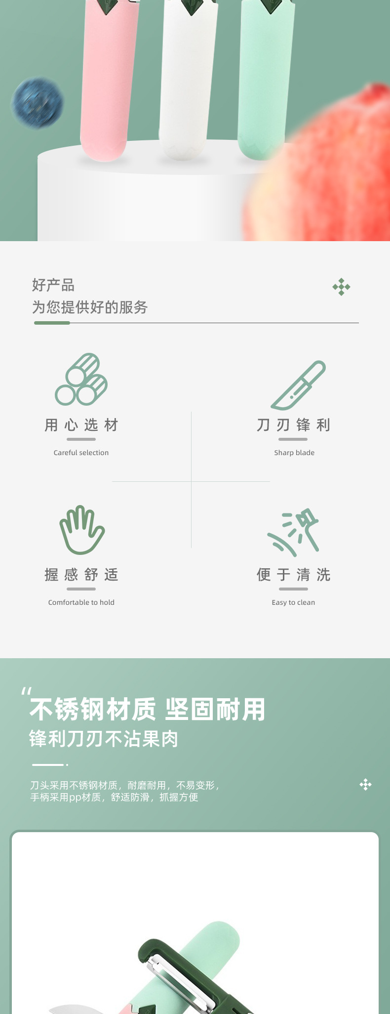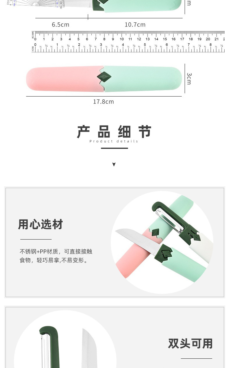 과일 칼 가정용 스테인레스 스틸 필러 칼 2 대 1 다기능 주방 껍질 칼 소매