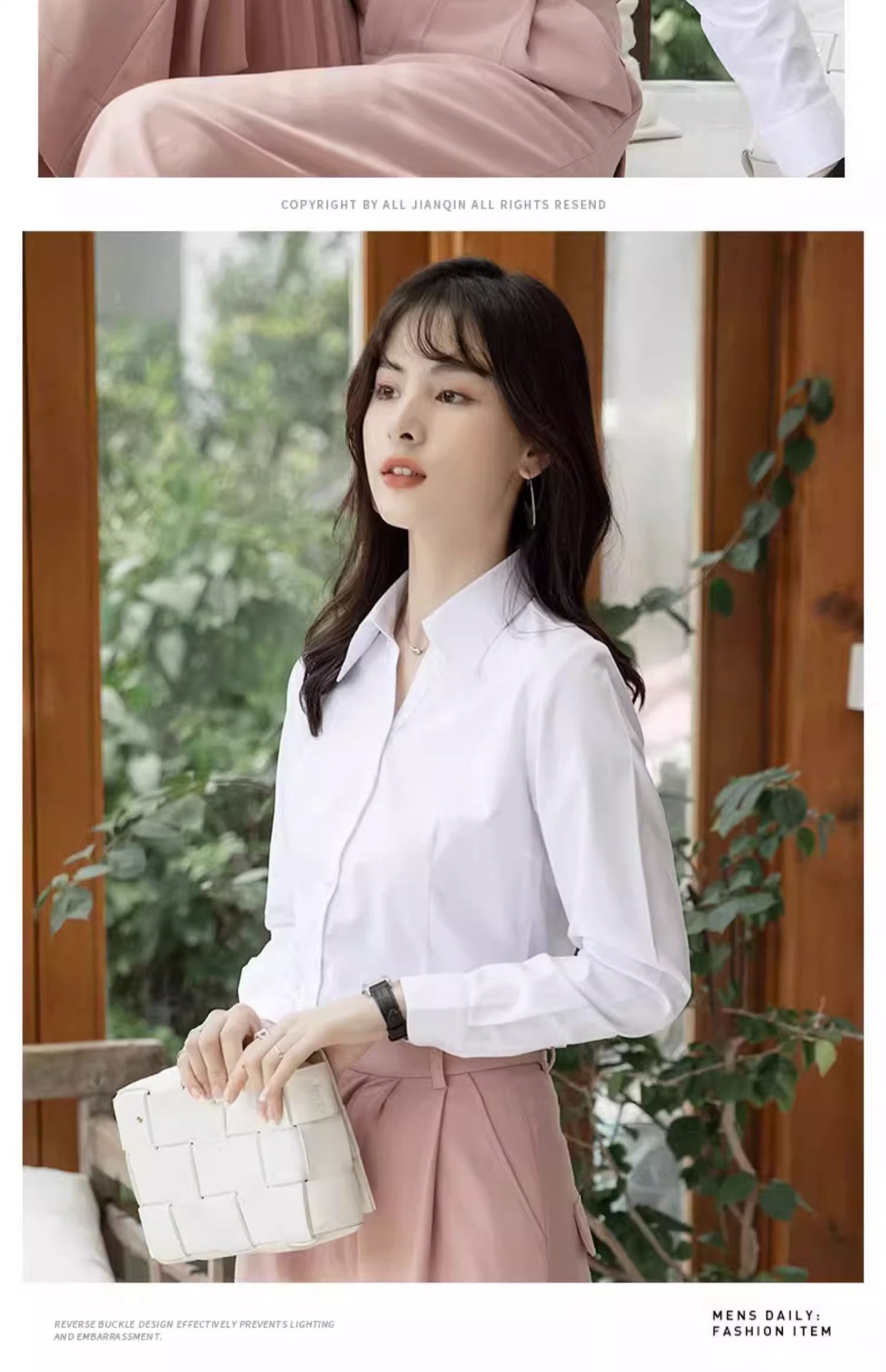 여성용 흰색 긴팔 셔츠 2026년 신상 봄 가을 이너웨어 전문직 정장 스타일 한국식 반팔 셔츠 작업복