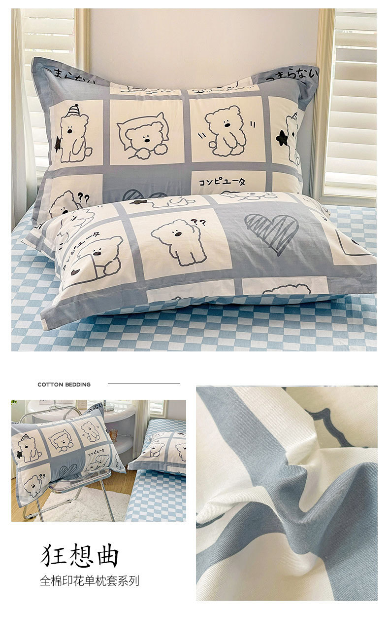 베개 커버 2025 신상 순면 프린트 48x74cm 한 쌍 단일 학생 기숙사 순면 베개 커버