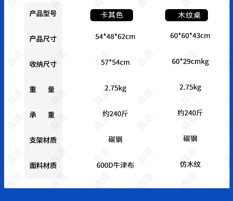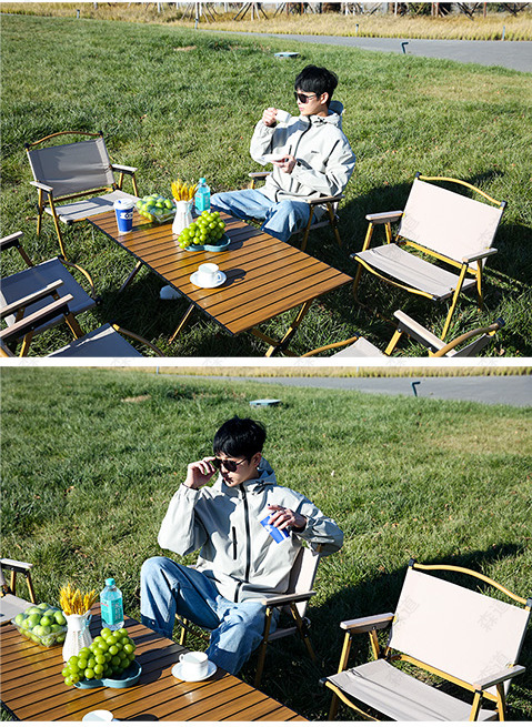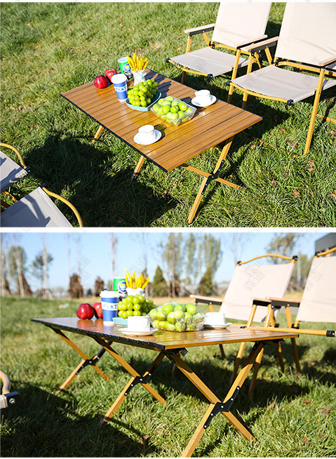원래 나뭇결 계란 롤 테이블 스몰 사이즈 60CM 대형 카키 의자 * 2