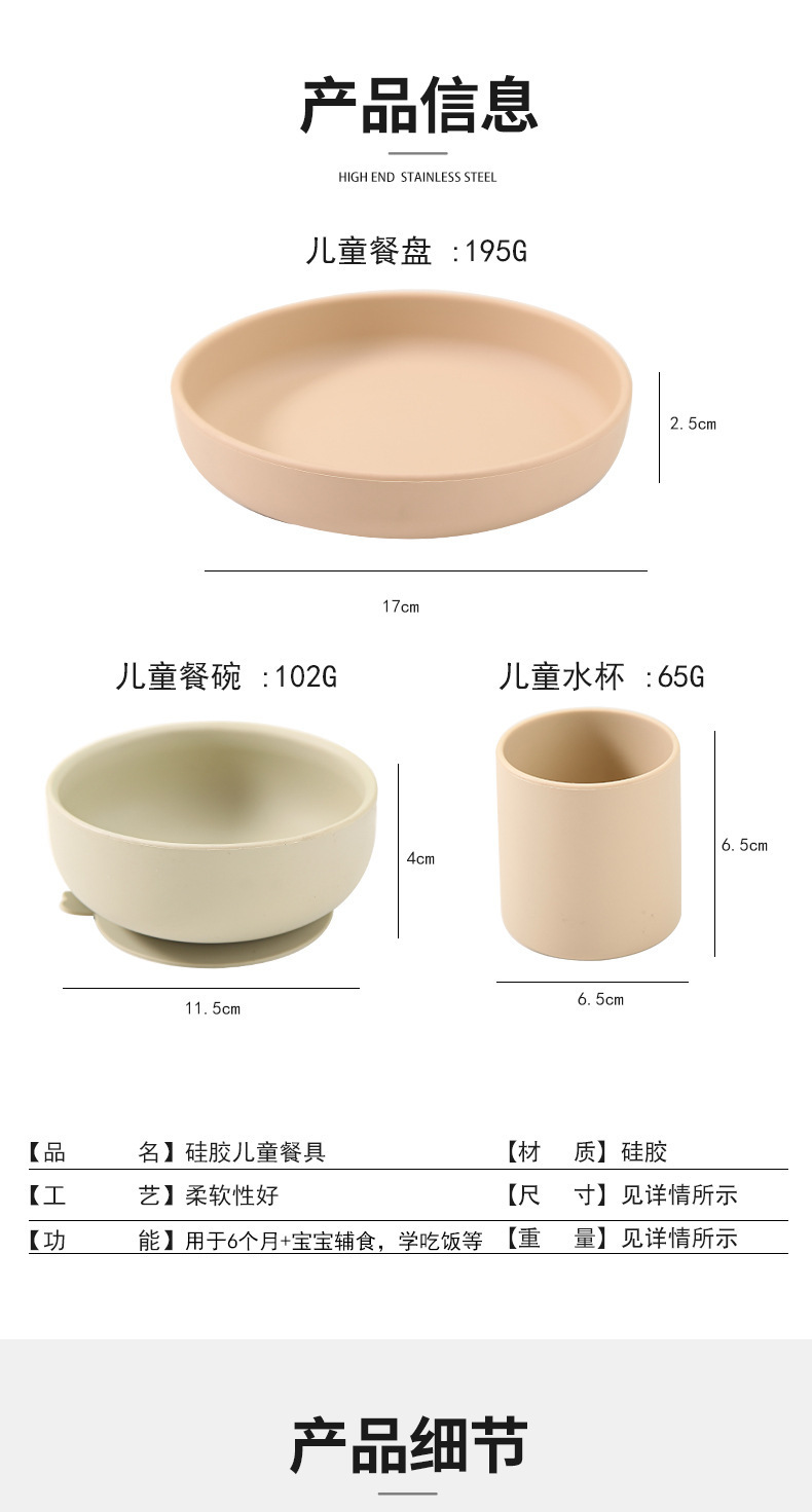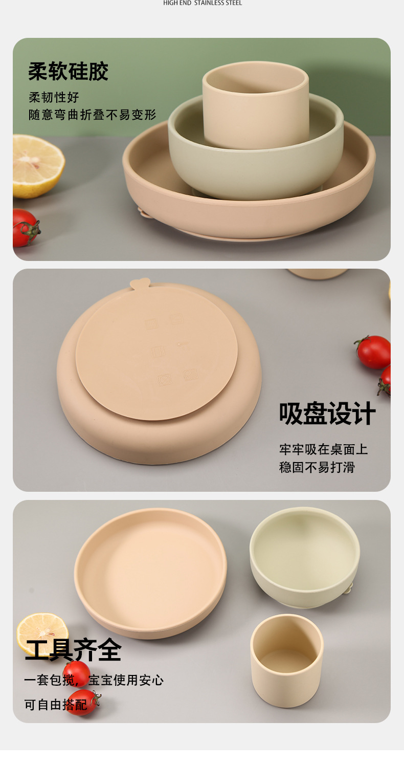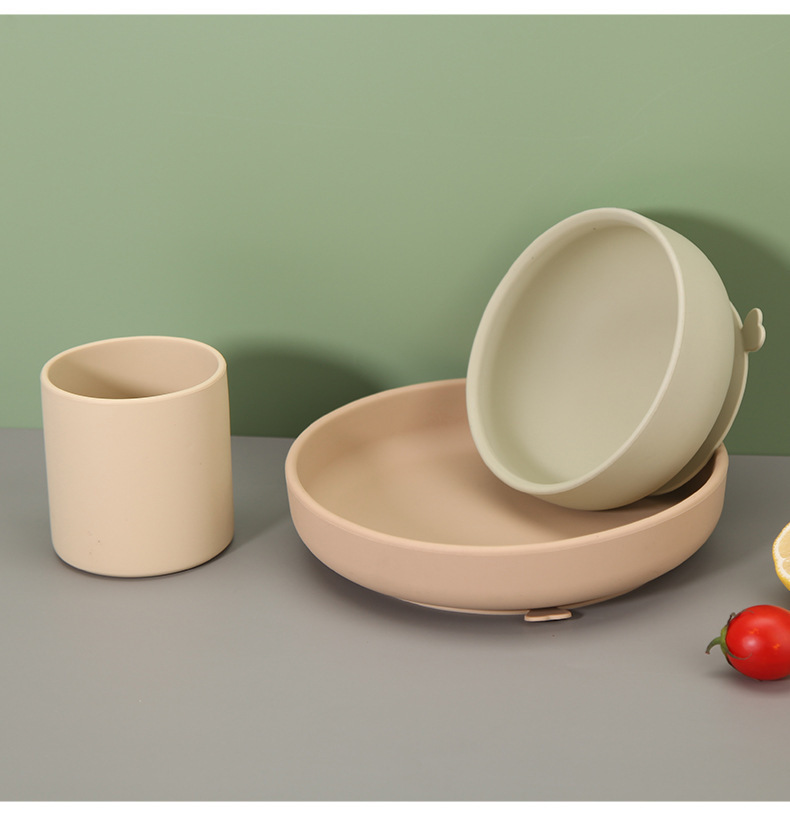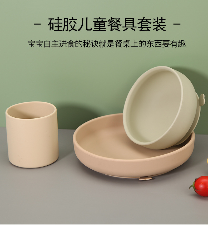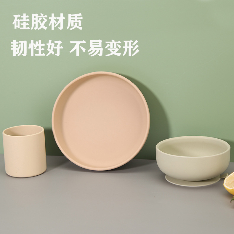 실리콘 디너 플레이트 어린이 디너 플레이트 아기 베이비 푸드 그릇 베이비 컵 플레이트 그릇 조합 학습 식탁 세트