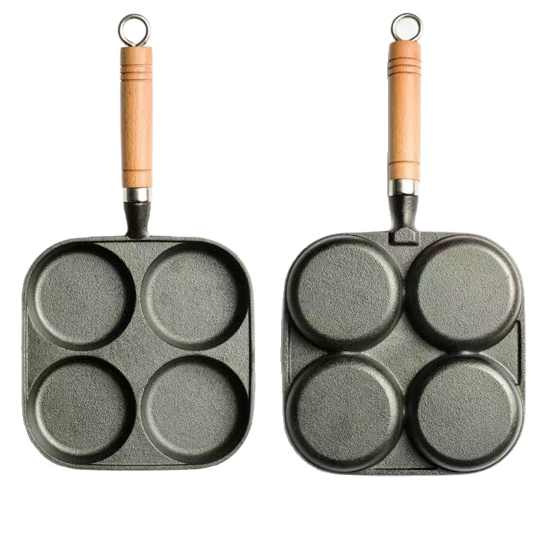 공장 도매 주철 4 홀 튀긴 계란 팬 햄버거 튀긴 계란 비 스틱 팬 코팅되지 않은 계란 만두 특수 팬