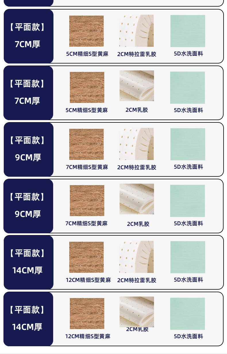 14cm 두께 [플랫] 12cm 미세 S 황마 2cm 라텍스 5D 세척 직물