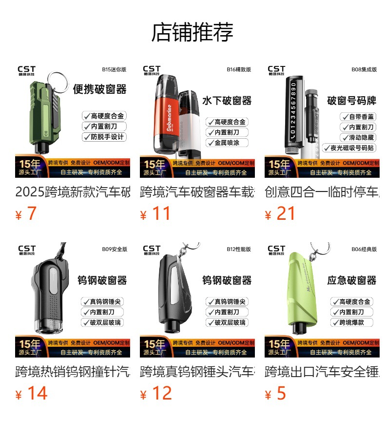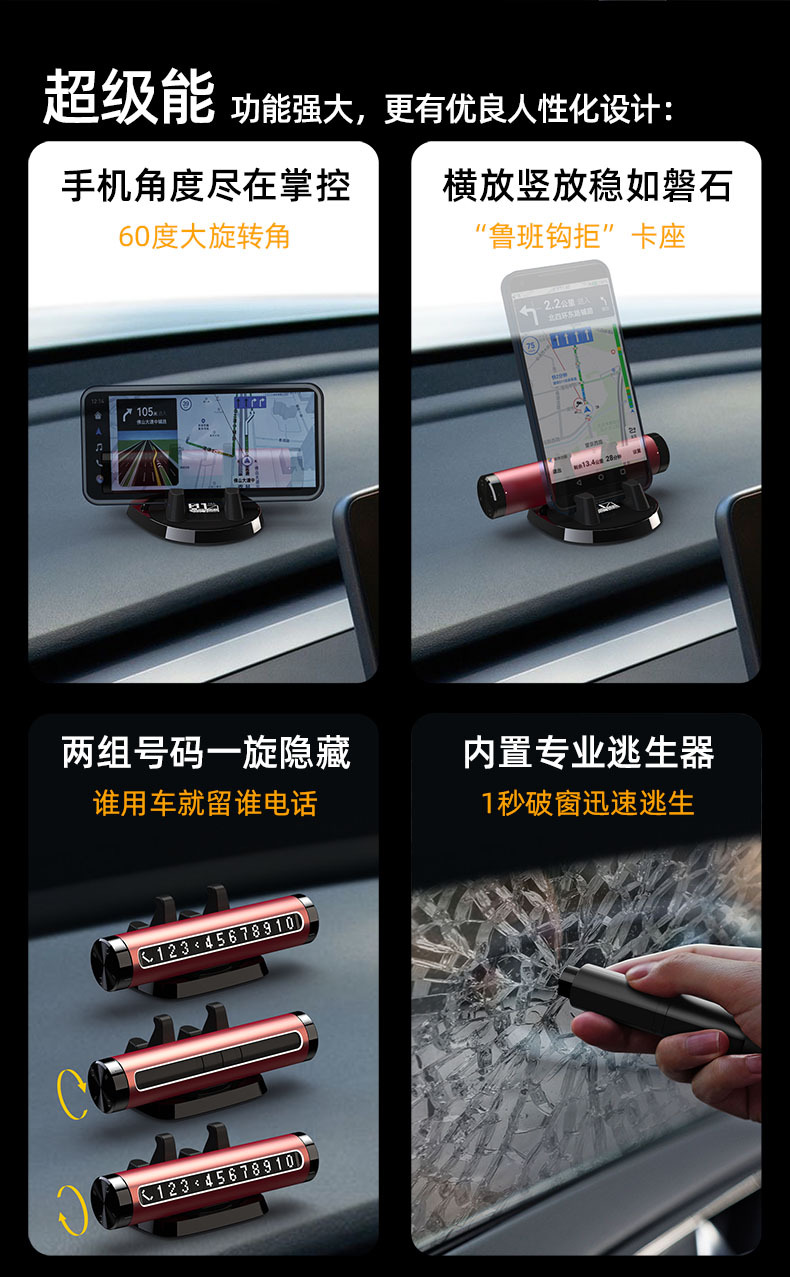 국경을 넘는 다기능 4-in-1 창문 파괴기 임시 주차 표지판 휴대폰 거치대 차량용 안전 망치 자동차 창문 파괴기